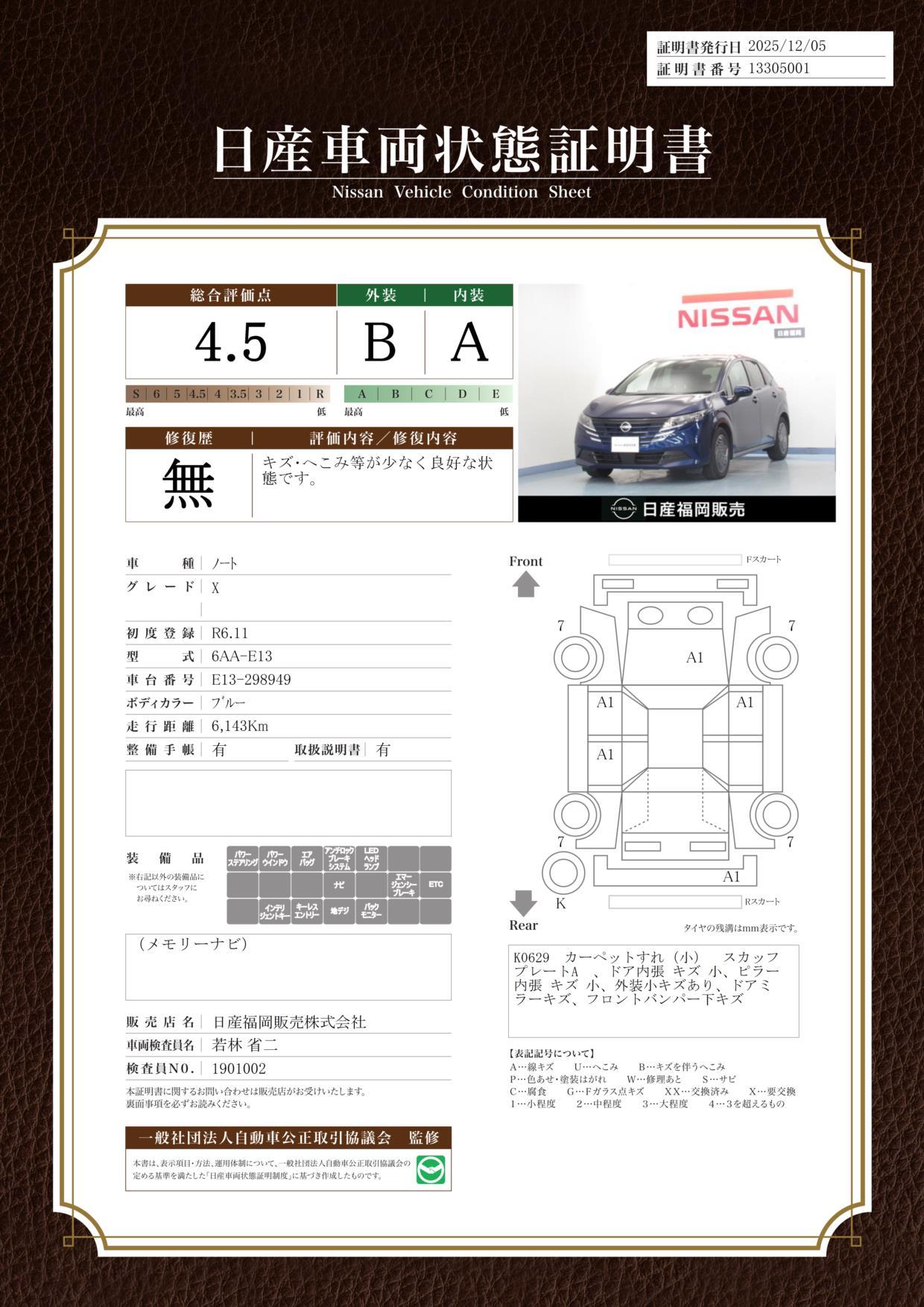 ワイド保証とは・・・(1)走行無制限の愛車のパーツ1年間無料保証!駆動系・電気系パーツしかもバッテリーも1年間の保証です!(2)1ヶ月または1000キロ到達時に無料で点検が受けられる!(3)信頼・安心の全国3000拠点の日産サービス工場が、あなたの愛車を徹底的にサポートします!