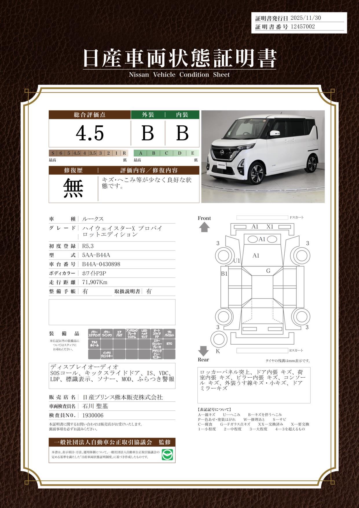 • また、修復歴・法定整備・保証の有無ならびに詳細内容につきましても、必ず各販売店にご確認いただきますようお願いいたします。