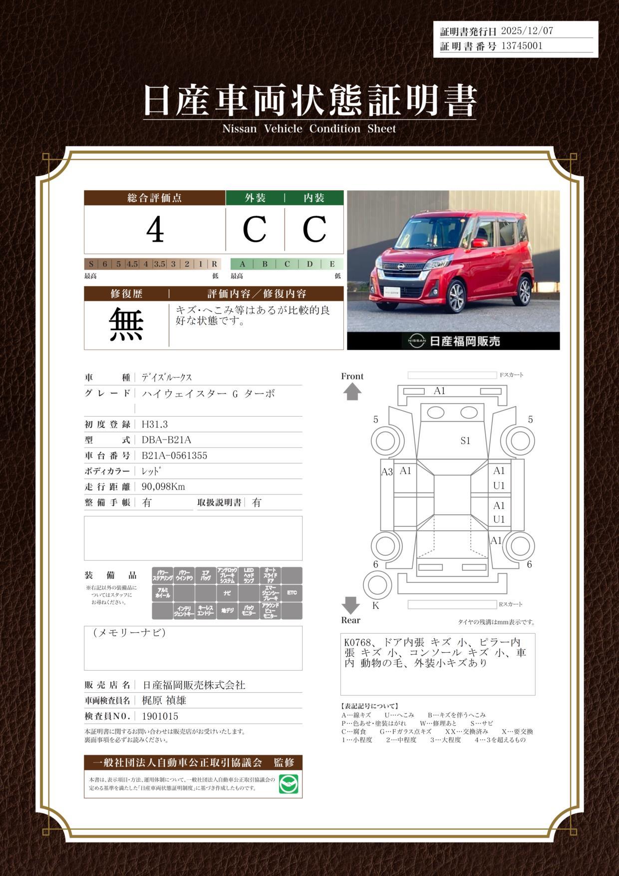 | 保証について | [保証付]:12ヶ月・走行無制限 |