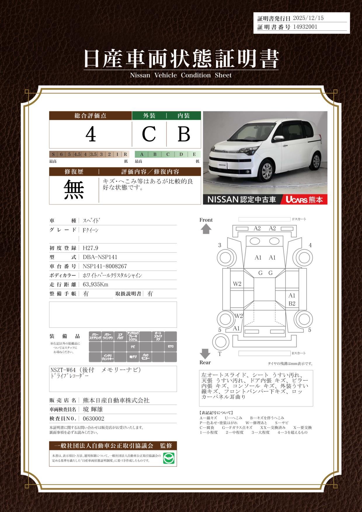 | 保証について | [保証付]:12ヶ月・走行無制限 |