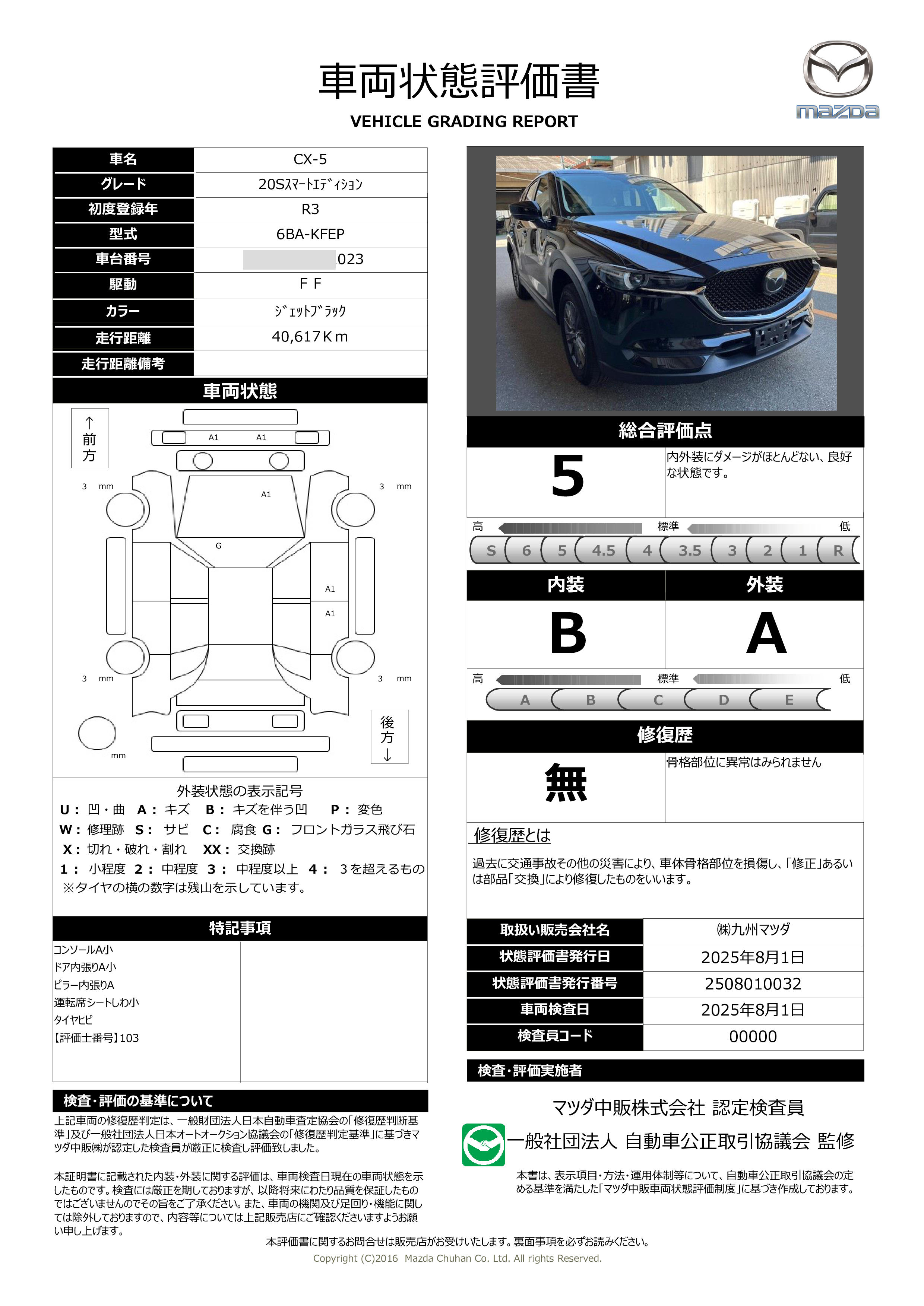九州マツダでは「本体価格35万円以上」の中古車をご購入のお客様には全車保証期間として納車から1年・走行距離無制限の保証をお付けしております。詳しくはスタッフまでお問い合わせください。