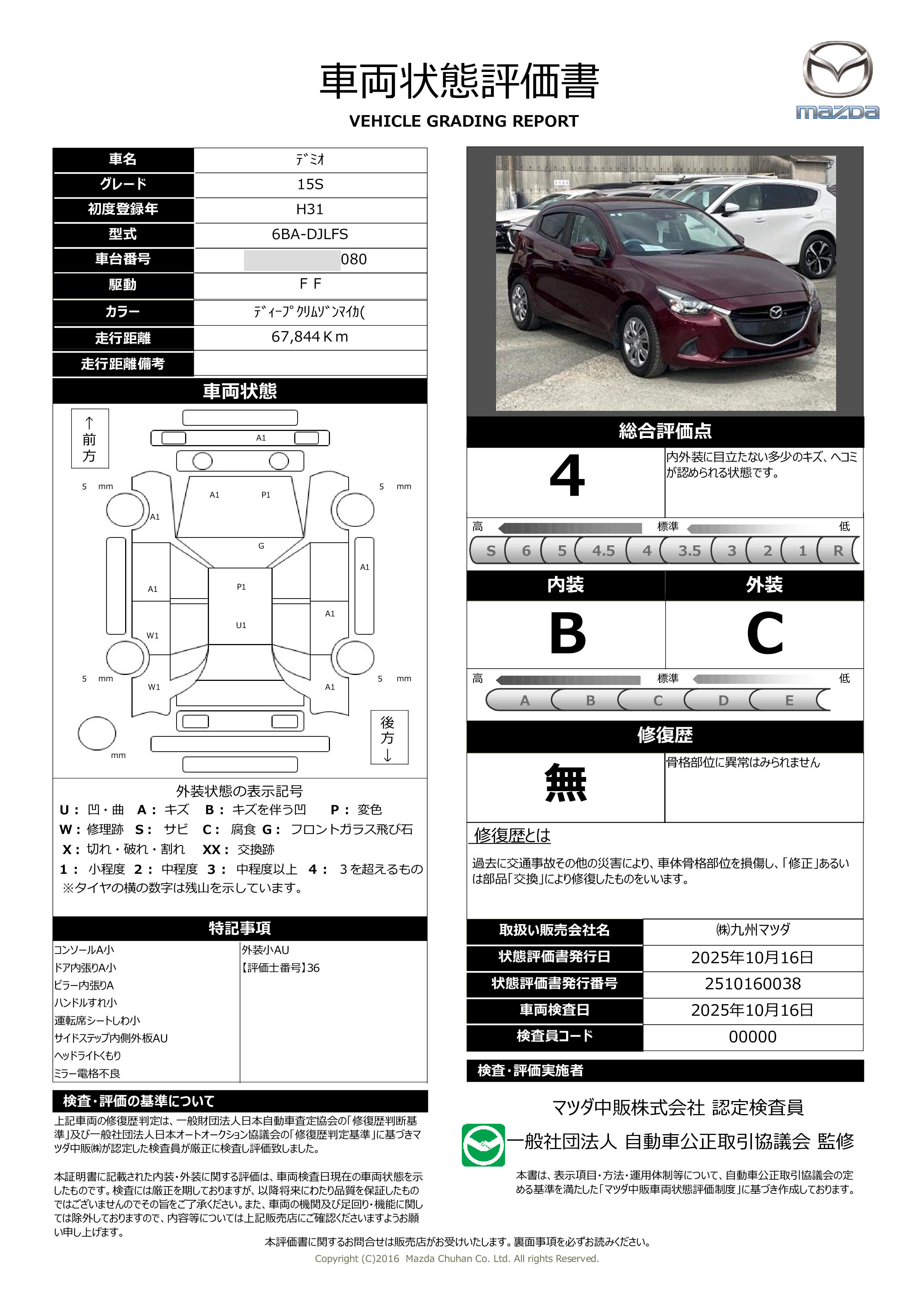 修復歴 なし 車体色 ディープクリムゾンマイカ(ブラック)