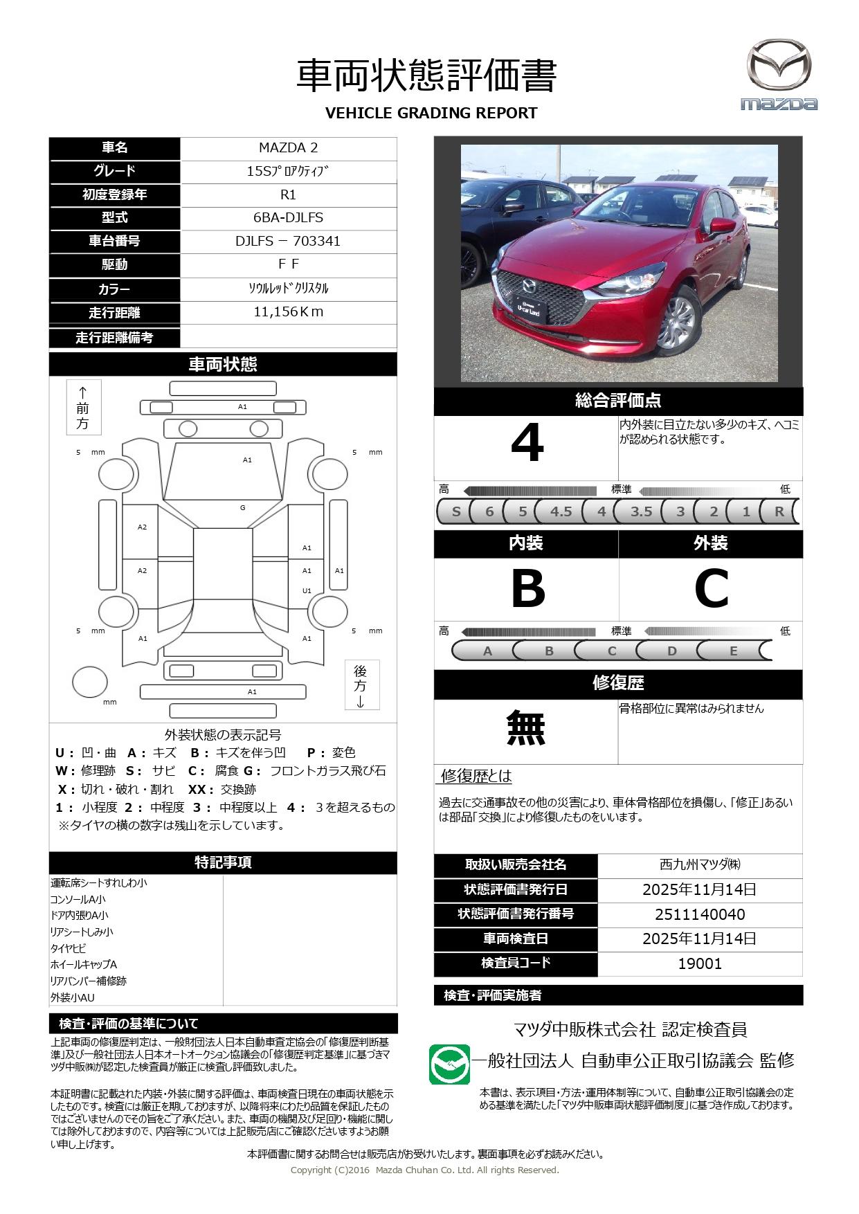 修復歴 なし 車体色 ソウルレッドクリスタルメタリック