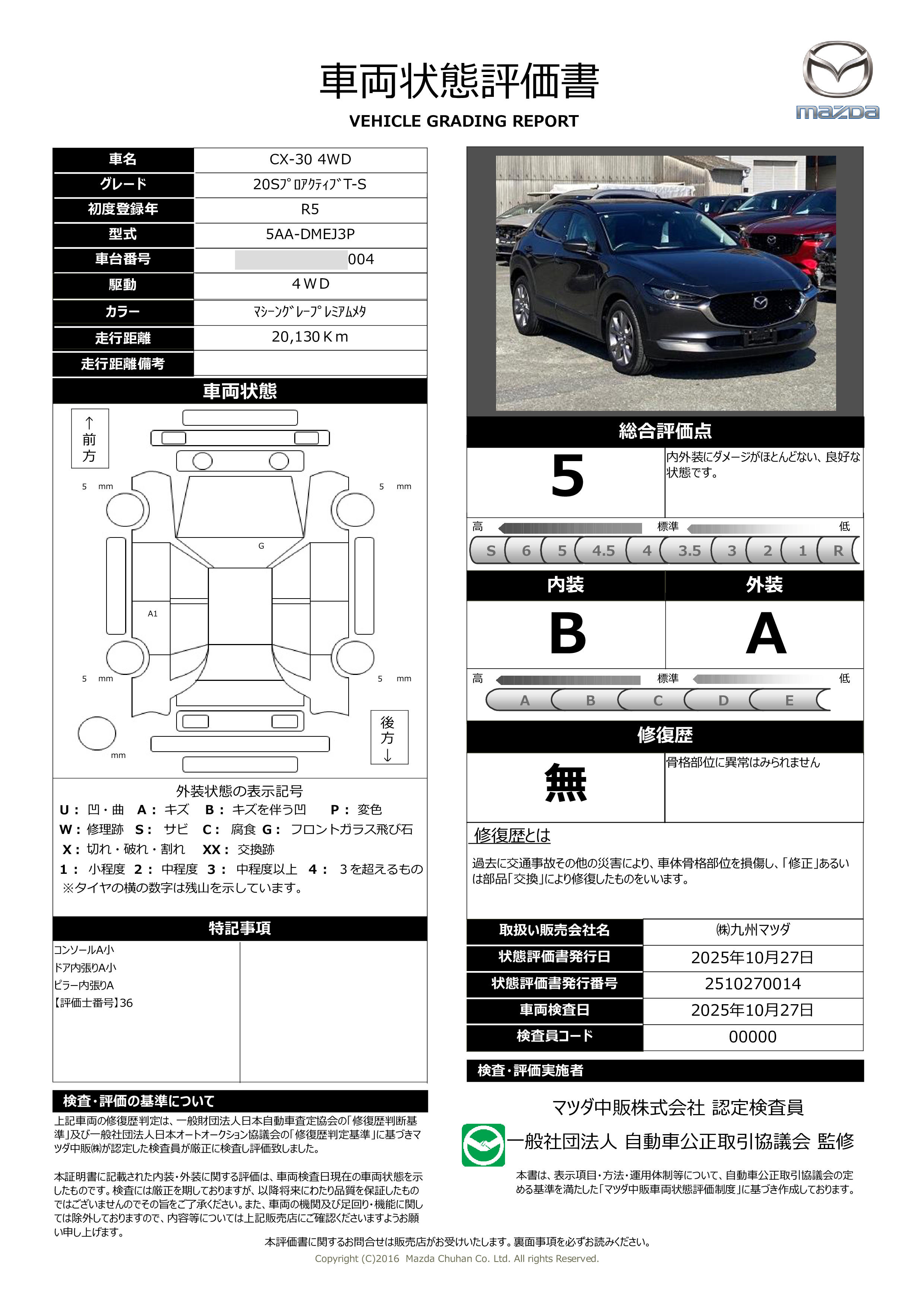 九州マツダでは「本体価格35万円以上」の中古車をご購入のお客様には全車保証期間として納車から1年・走行距離無制限の保証をお付けしております。詳しくはスタッフまでお問い合わせください。