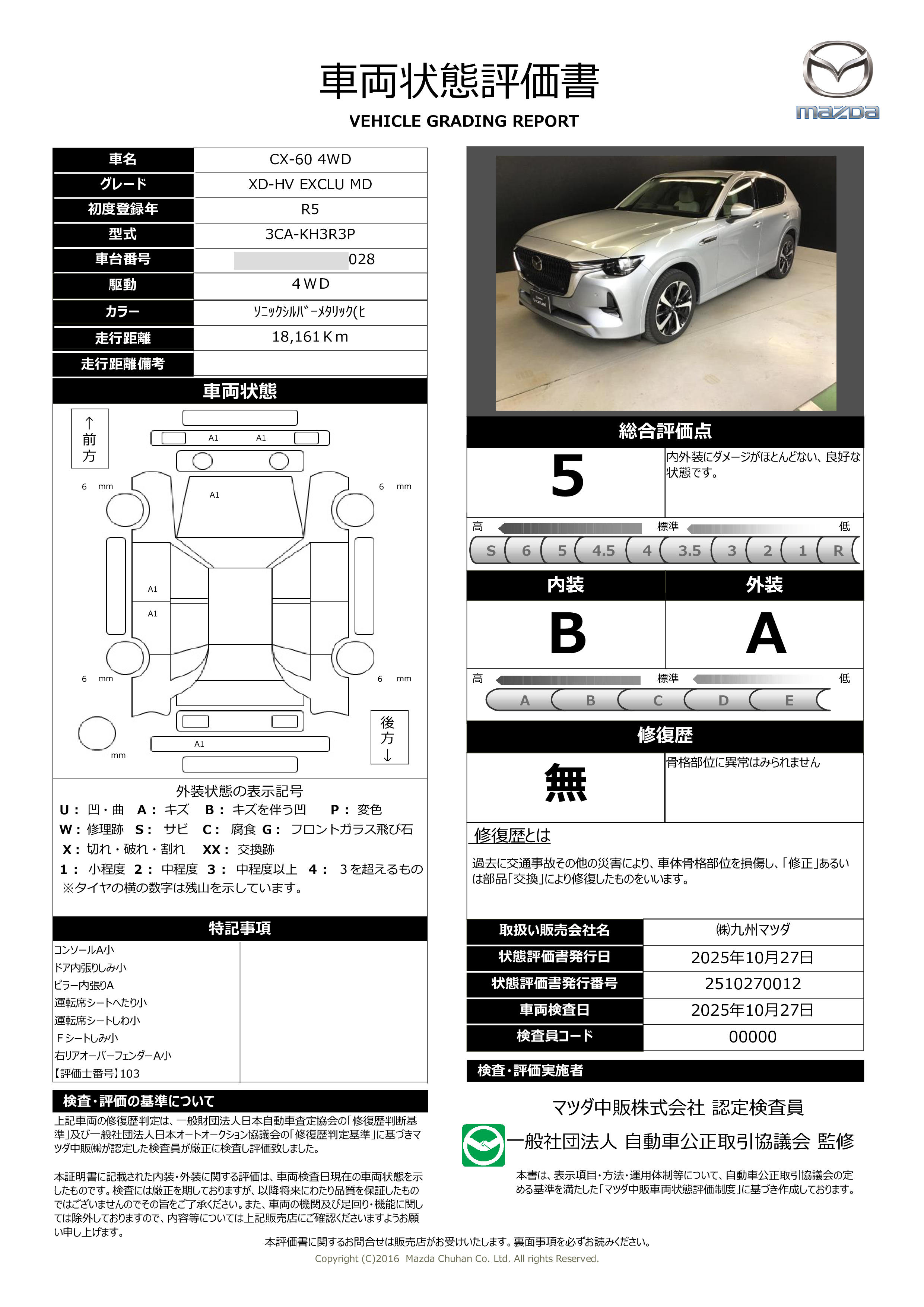 九州マツダでは「本体価格35万円以上」の中古車をご購入のお客様には全車保証期間として納車から1年・走行距離無制限の保証をお付けしております。詳しくはスタッフまでお問い合わせください。