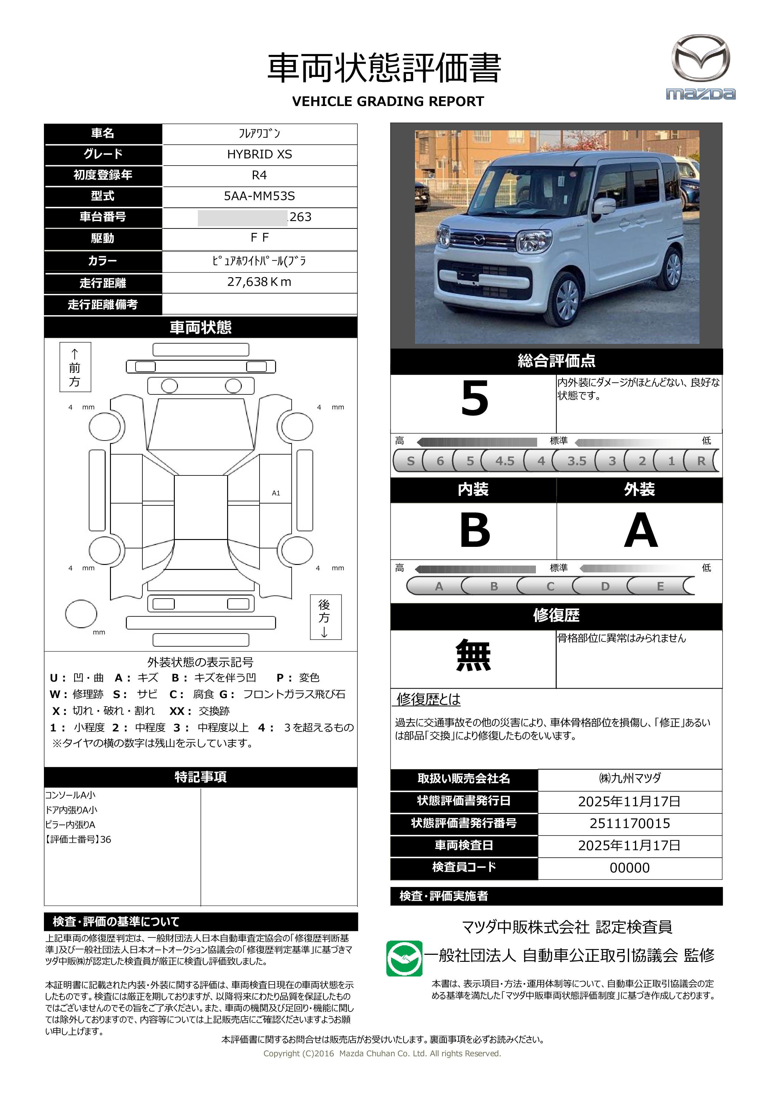 | 保証項目 | エンジン機構/動力伝達機構/ステアリング機構/サスペンション機構/排ガス浄化機構/電子制御機構/乗員保護機構/ ハイブリッド機構/以下除く全部品(ボディ内・外装品/ナビ・オーディオ/消耗部品・油脂類) |