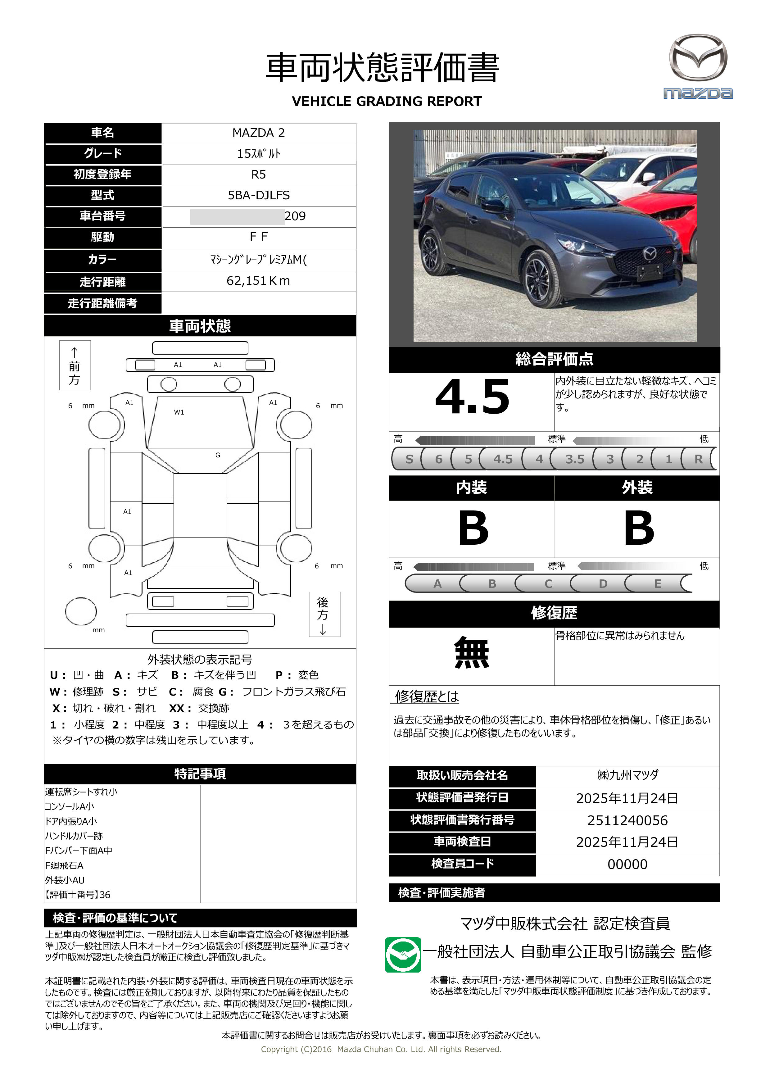 九州マツダでは「本体価格35万円以上」の中古車をご購入のお客様には全車保証期間として納車から1年・走行距離無制限の保証をお付けしております。詳しくはスタッフまでお問い合わせください。