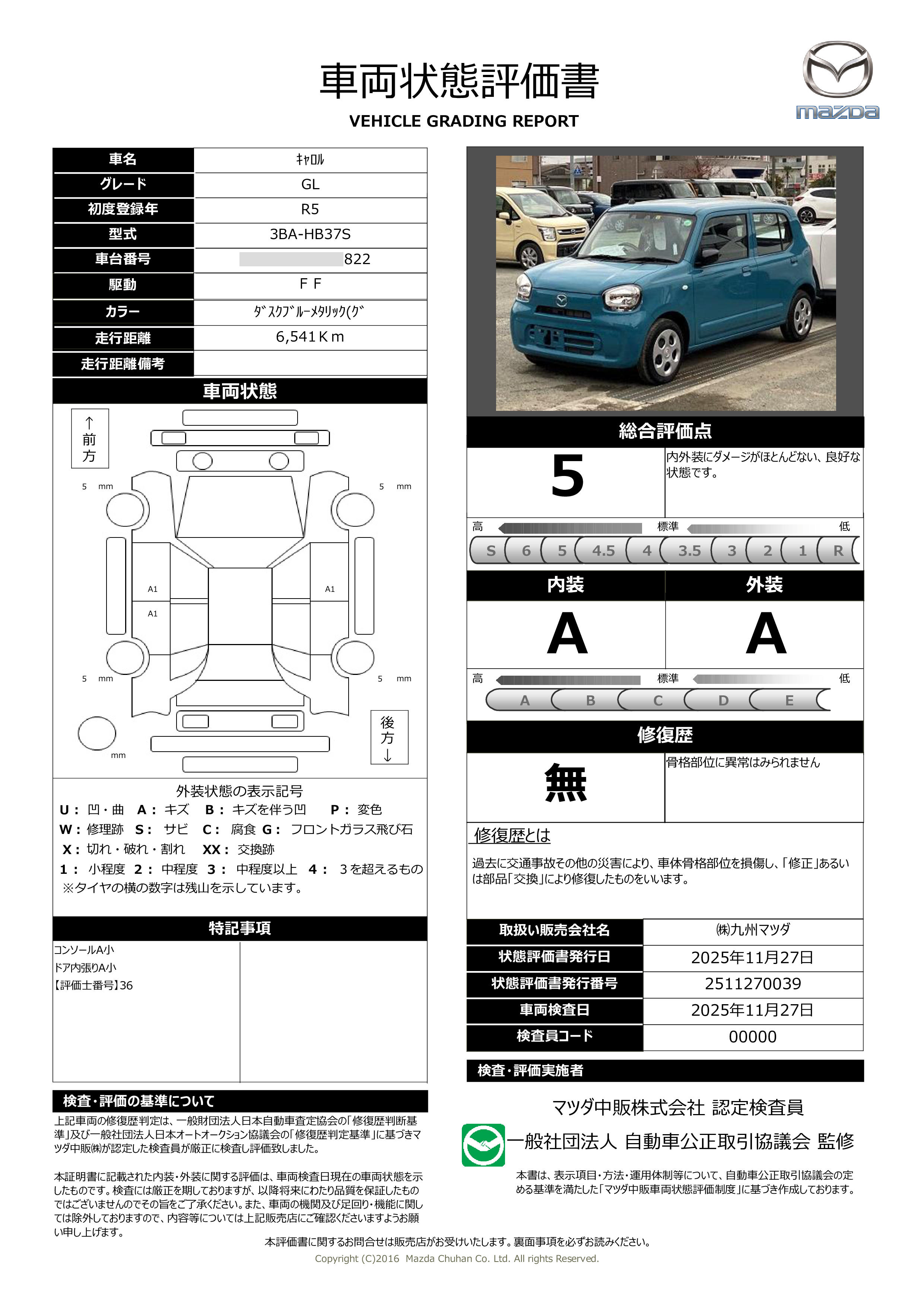 修復歴 なし 車体色 ダスクブルーメタリック(グレー)