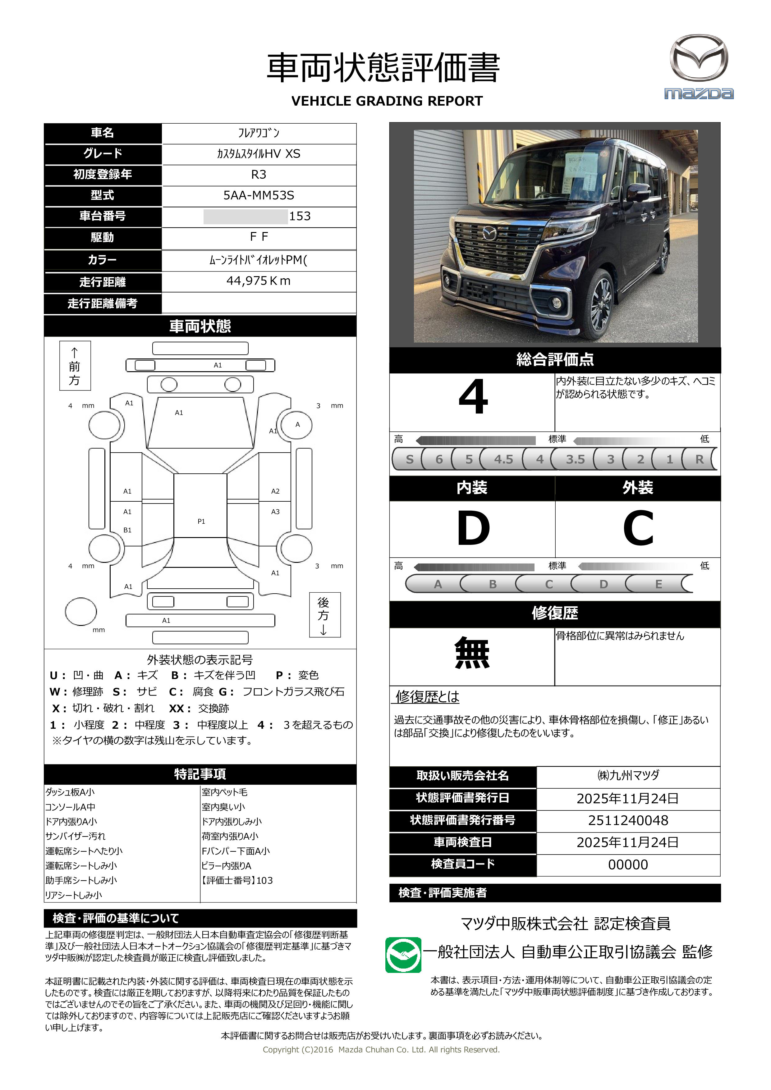 フレアワゴンカスタムスタイル カスタムHV XS 全方位モニターナビ 両側電動 0800443A20251130Z002 2