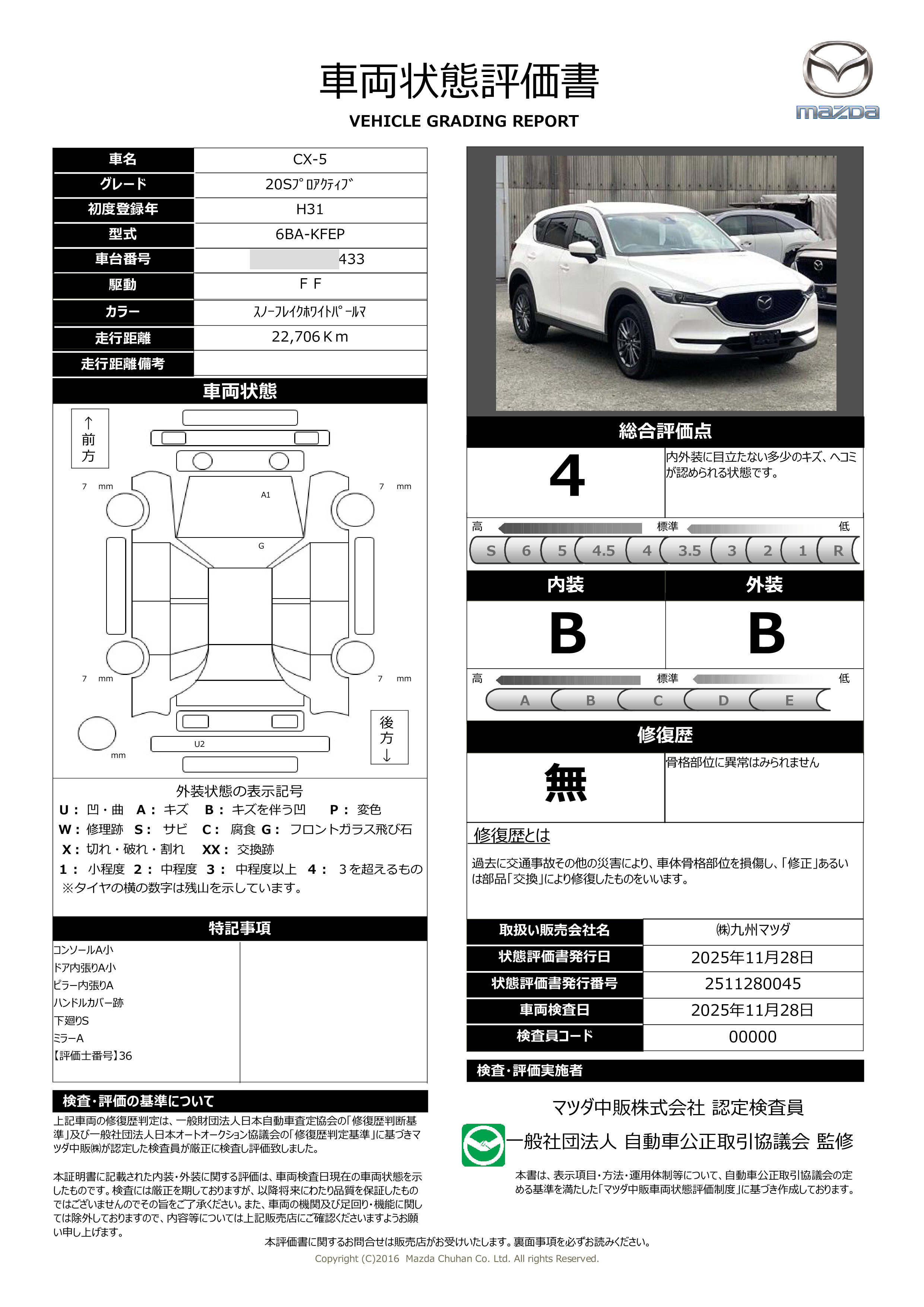 CX−5 2.0 20S プロアクティブ ナビ 0803584A20251130Z001 6