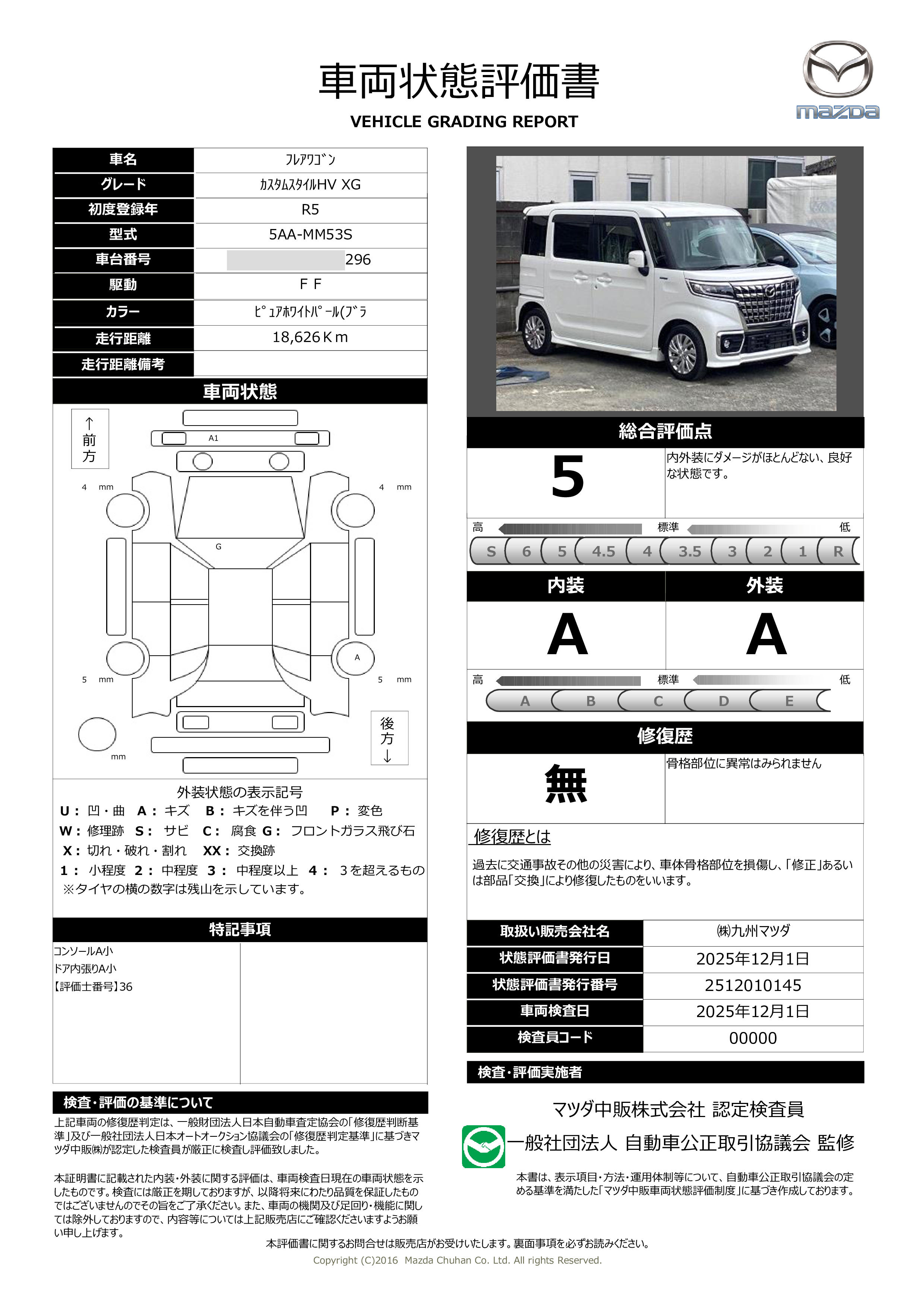 安心の第三者審査機関が監修した「車両状態評価書」付。修復歴・冠水歴・メーター巻き戻し無しです。 25