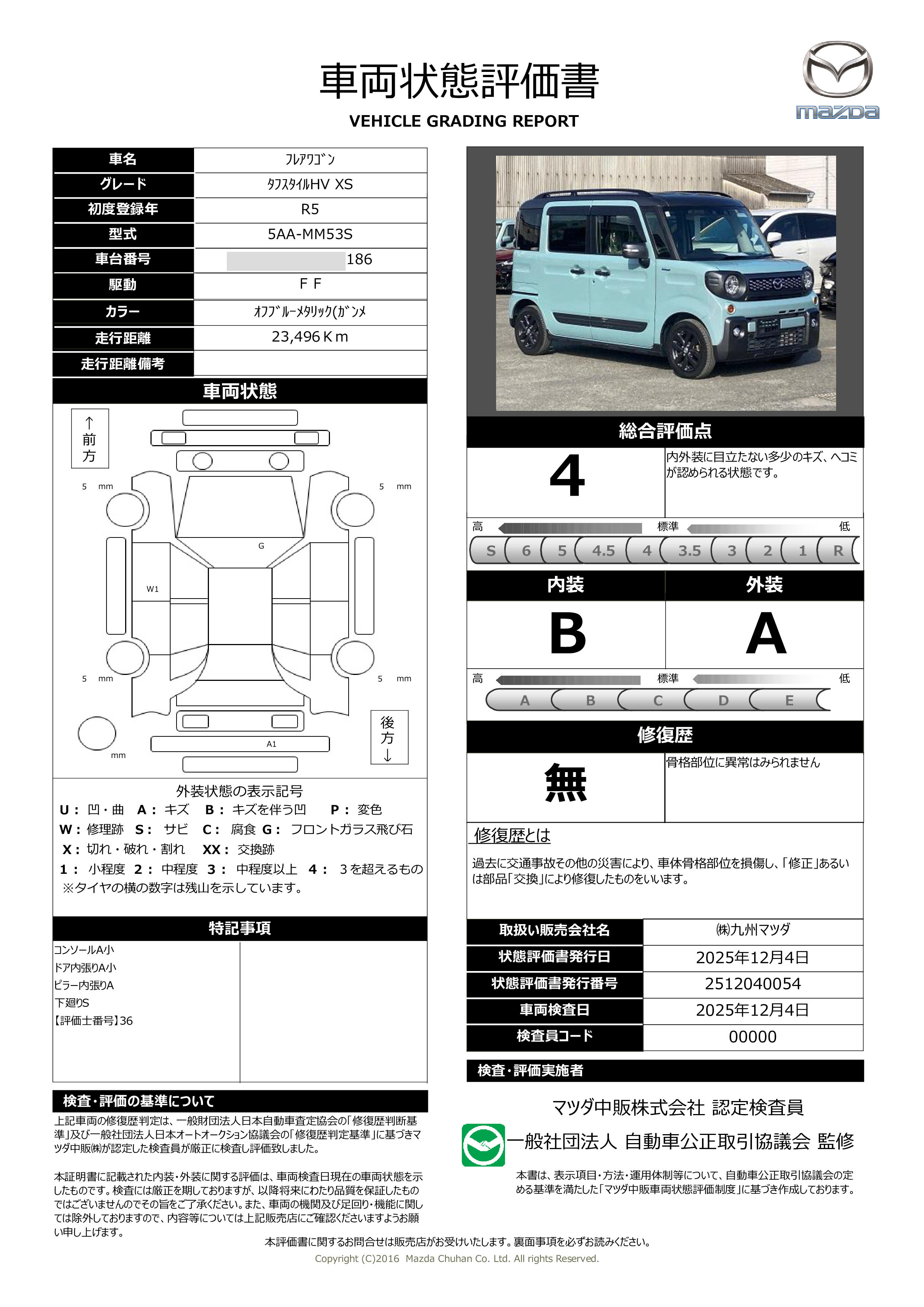 九州マツダでは「本体価格35万円以上」の中古車をご購入のお客様には全車保証期間として納車から1年・走行距離無制限の保証をお付けしております。詳しくはスタッフまでお問い合わせください。