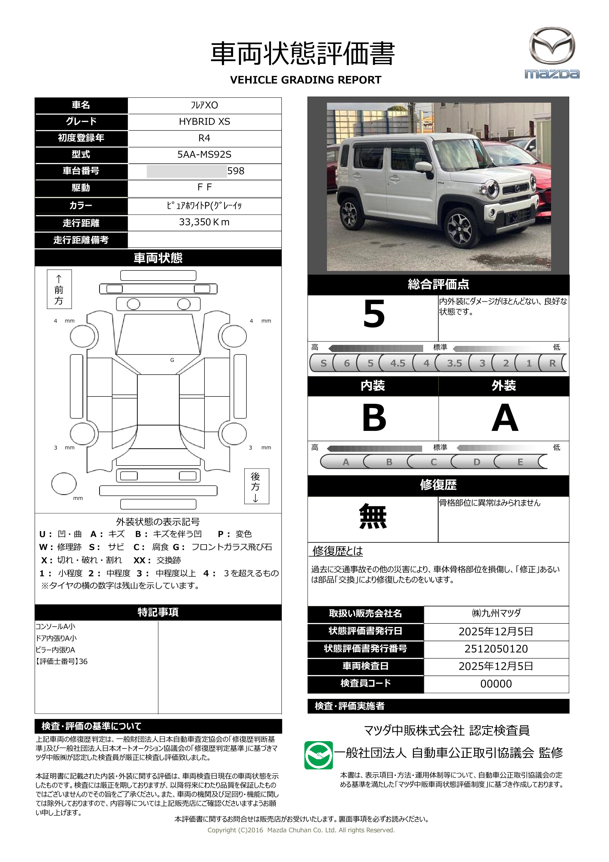 九州マツダでは「本体価格35万円以上」の中古車をご購入のお客様には全車保証期間として納車から1年・走行距離無制限の保証をお付けしております。詳しくはスタッフまでお問い合わせください。