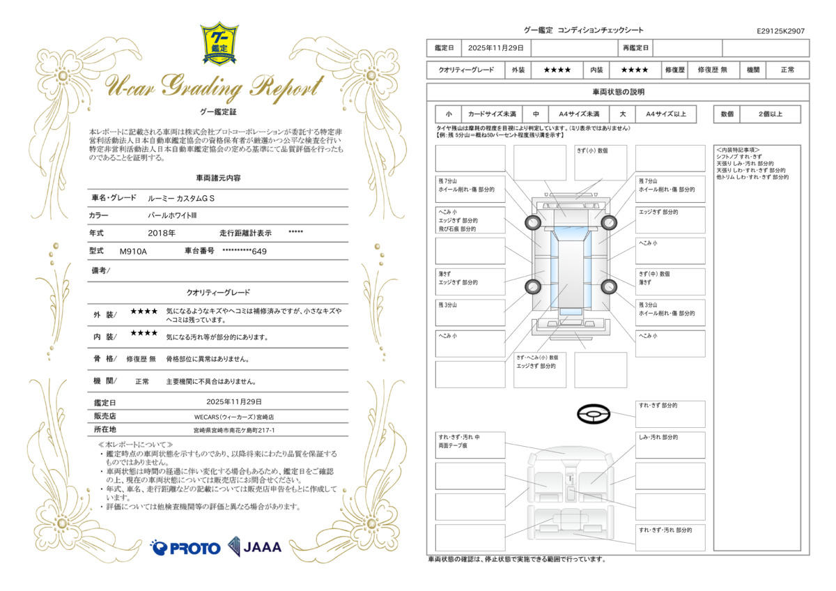 [保証付]:1ヶ月・1000km ※いずれか早い時期が保証適用の条件となります。 納車後1ヶ月・1000km以内は36機構・343項目を保証いたします。詳しくは販売店までお問い合わせ下さい。 |
