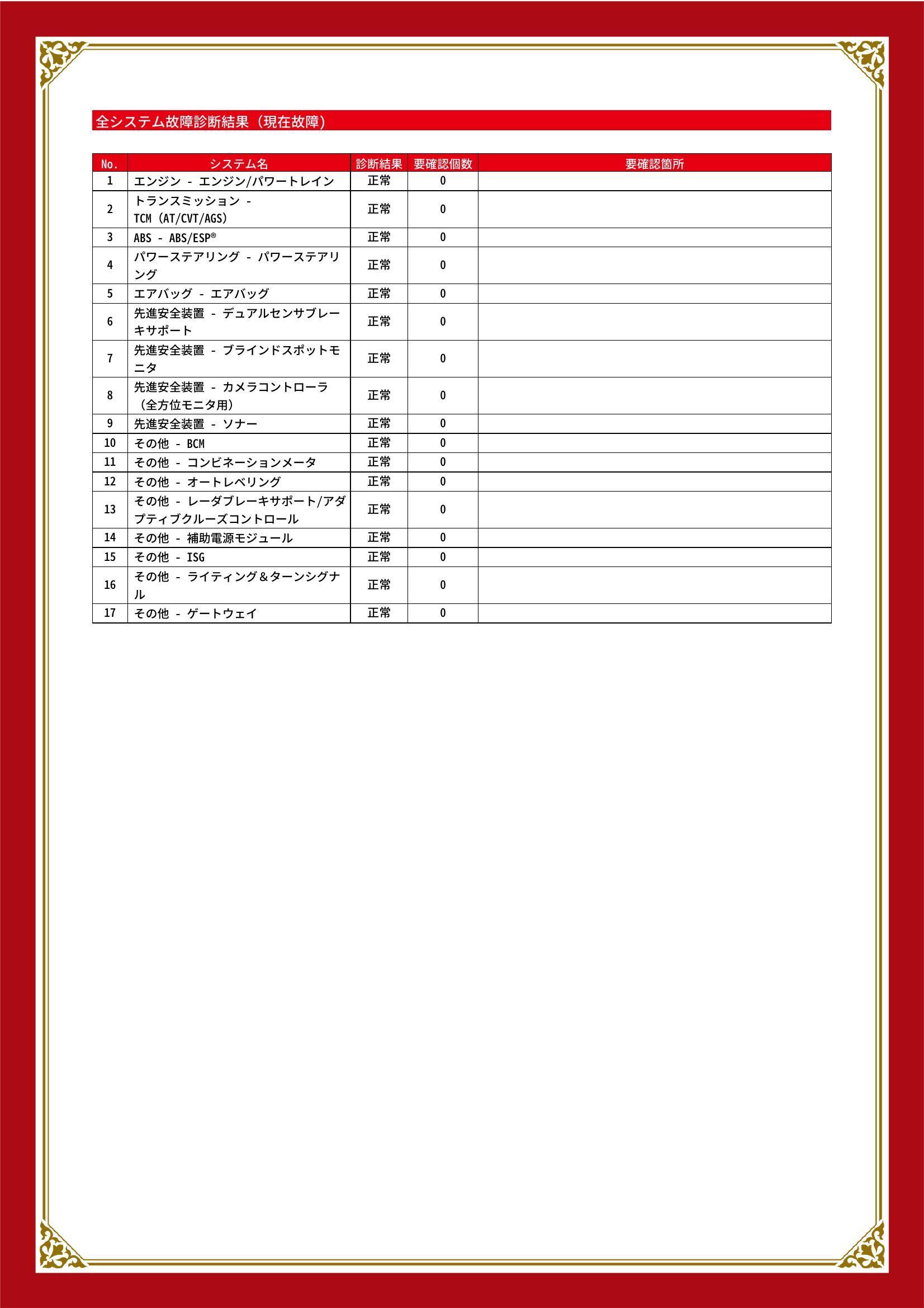 | 保証項目 | 納車後1ヶ月・1000km以内は36機構・343項目を保証いたします。詳しくは販売店までお問い合わせ下さい。 |