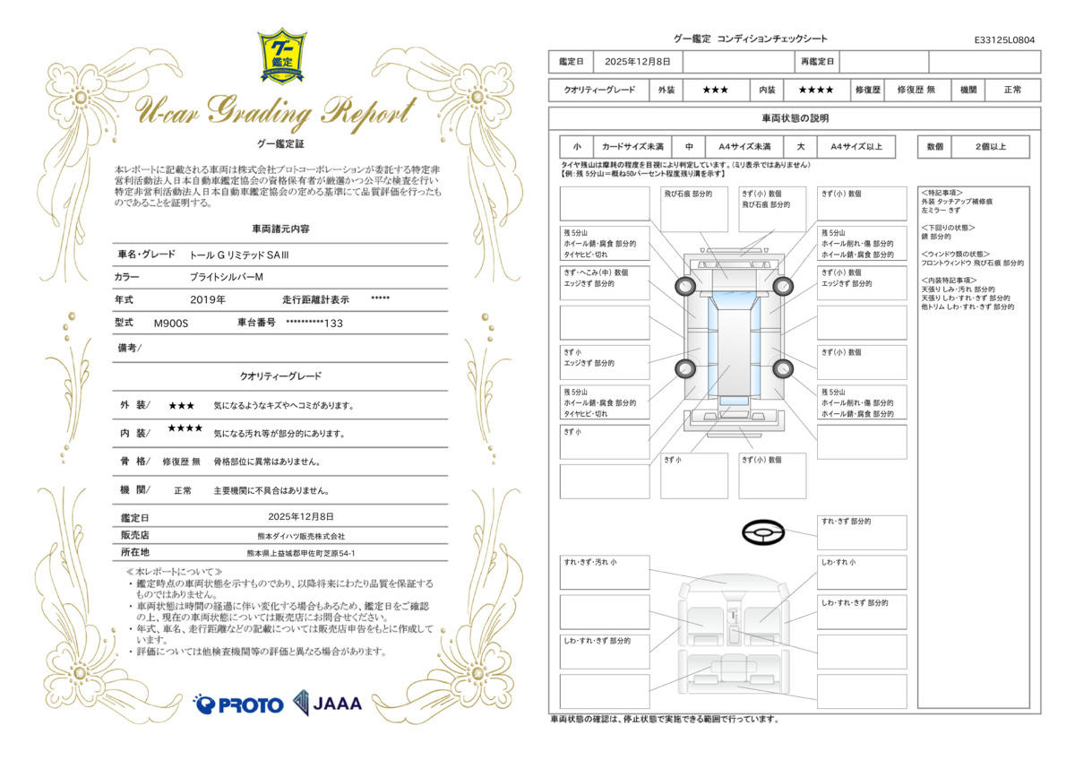 | 保証について | [保証付]:6ヶ月・10000km ※いずれか早い時期が保証適用の条件となります。 |