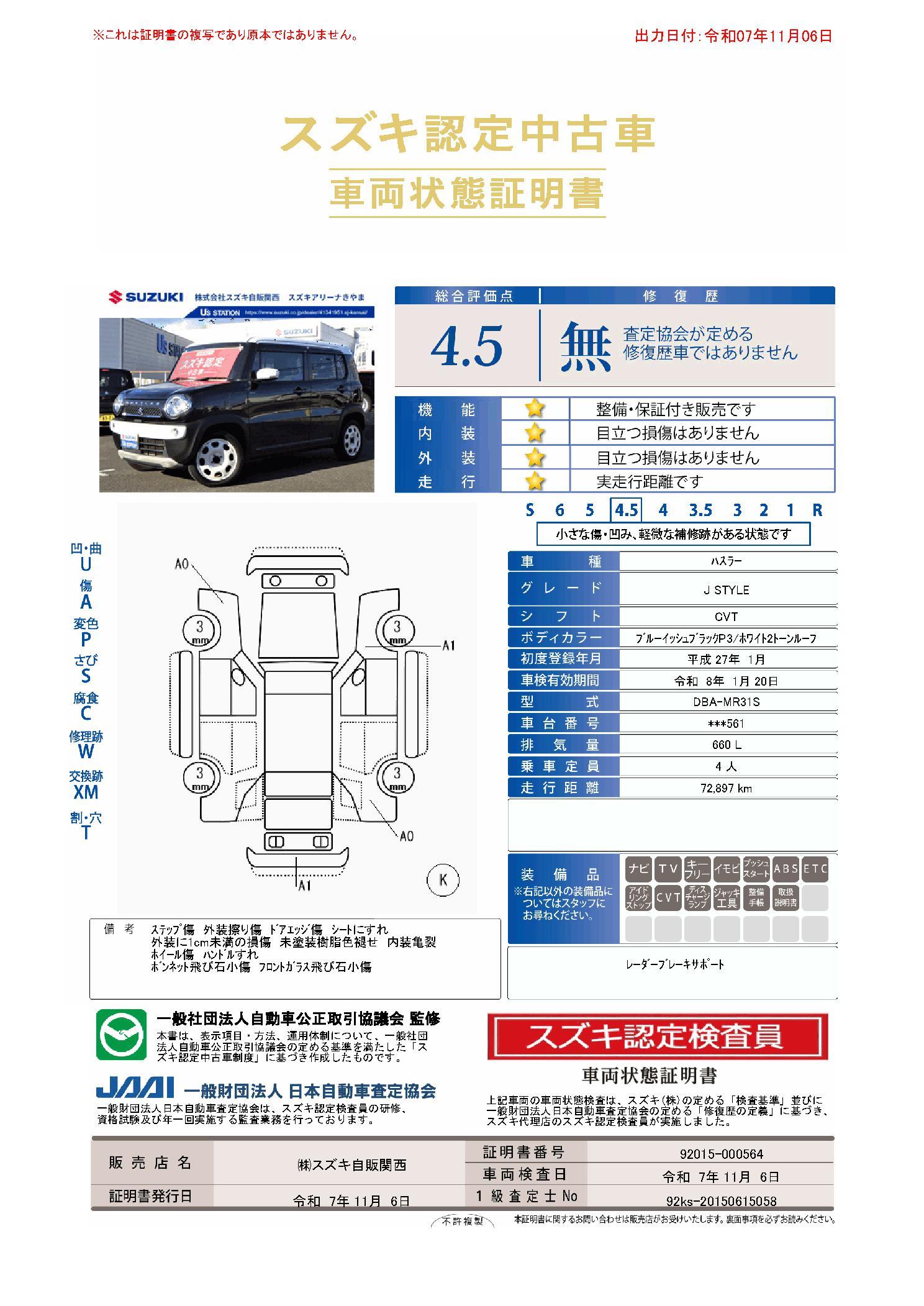 スズキ中古車の基本保証「OK保証」に加えて、オプションの中古車延長保証「OK保証プラス」もご用意。詳しくはスタッフまで。