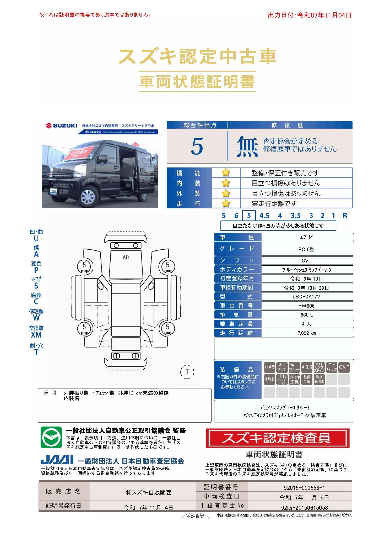 | 保証について | [保証付]:2027(令和9)年10月まで・60000km ※いずれか早い時期が保証適用の条件となります。 |