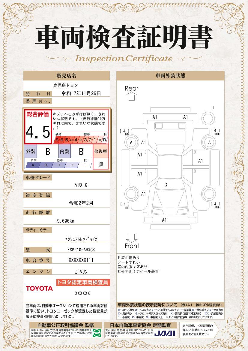 ヤリス G バックモニタ− 誤発進抑制機能 ドライブレコーダ 1100442A20251202T003 4