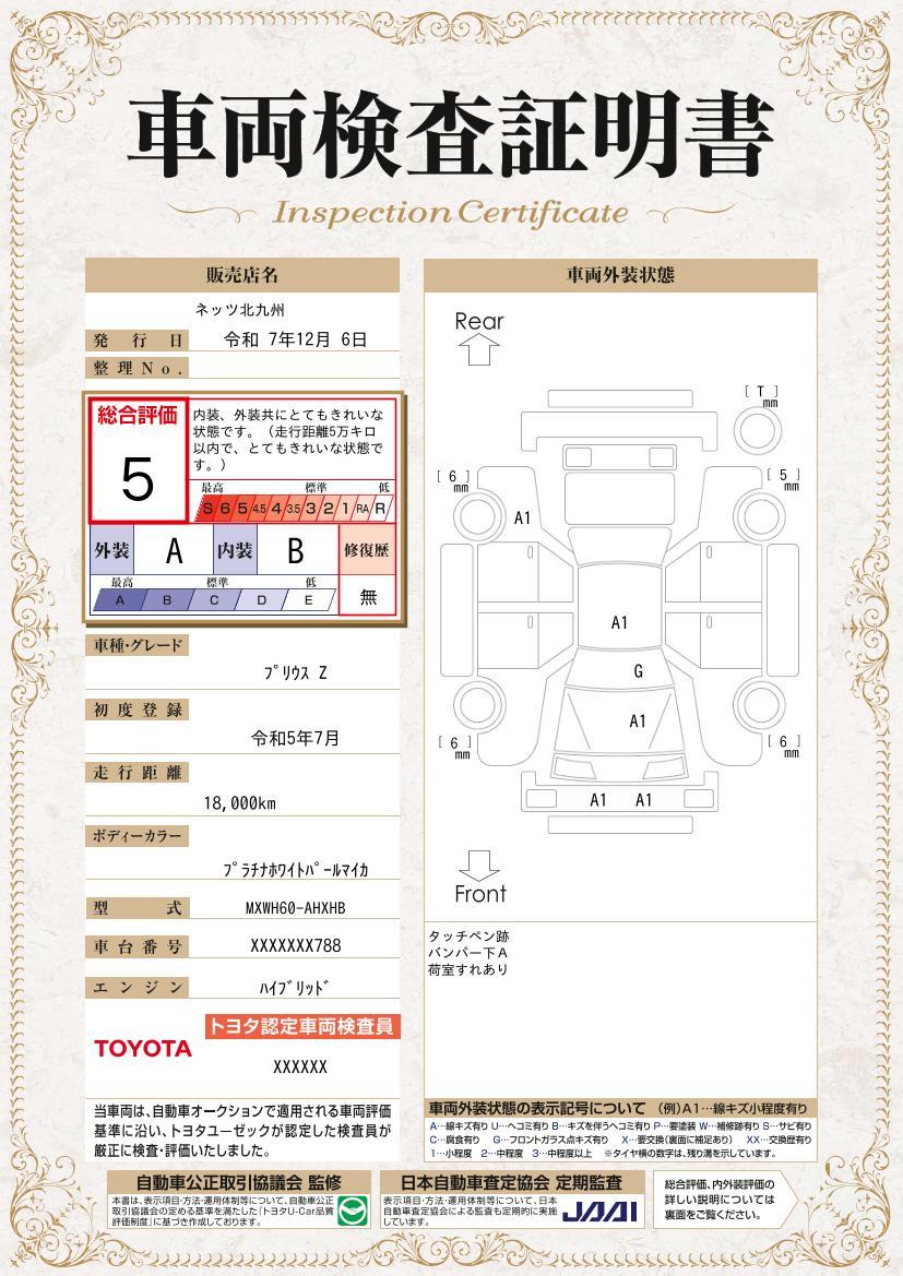 トヨタ プリウス Z 1年保証 ワンオーナー シートエアコン フルセグ メモリーナビ ミュージックプレイヤー接続可 バックカメラ 衝突被害軽減システム ETC ドラレコ LEDヘッドランプ アイドリングストップ