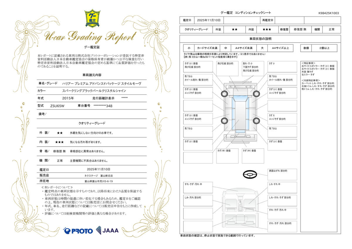 弊社では、全車『修復歴なし』のお車のみ取り扱っております。専任バイヤーによる厳選した仕入れの後、入庫後の車両チェックを行い、ネクステージが認定した高品質な中古車をご提供しております。 14
