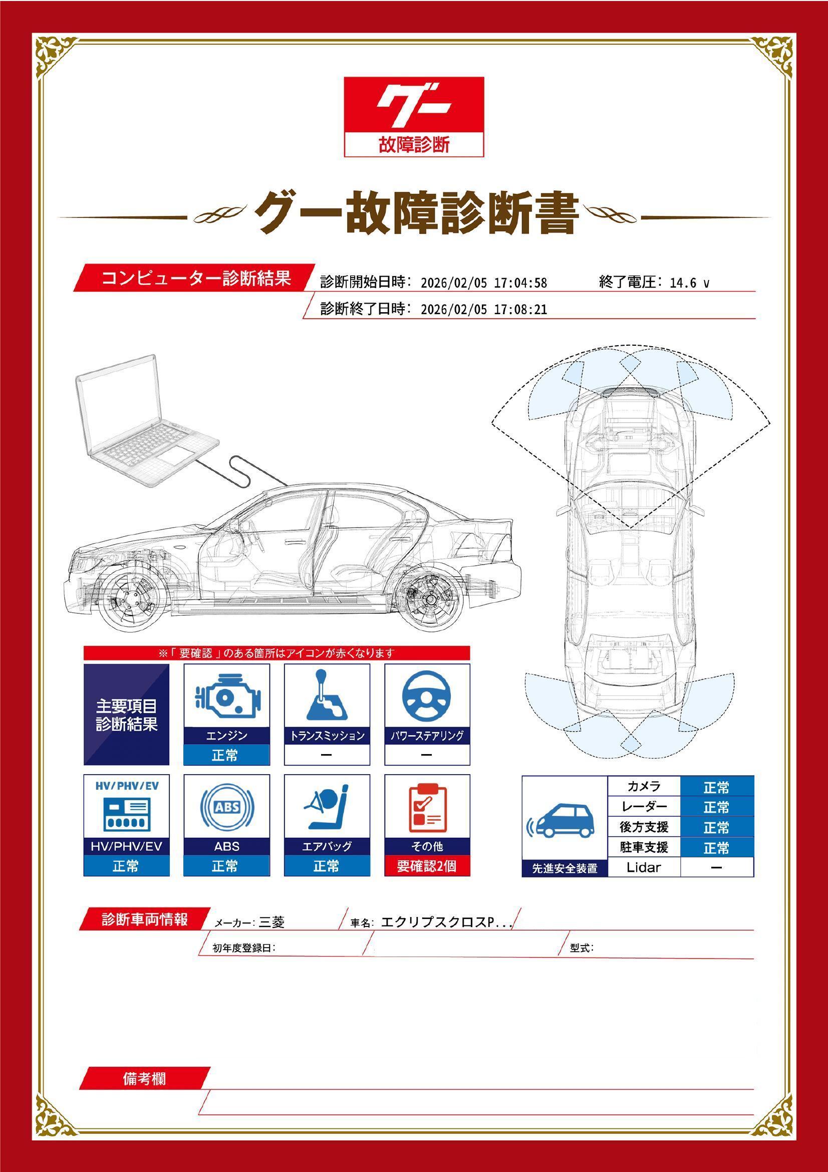 | 保証項目 | 3ヶ月・3000km以内ならエンジン、トランスミッション、ハイブリッド、ステアリング、ブレーキの各機構における主要項目を無償修理(または交換)いたします。 |