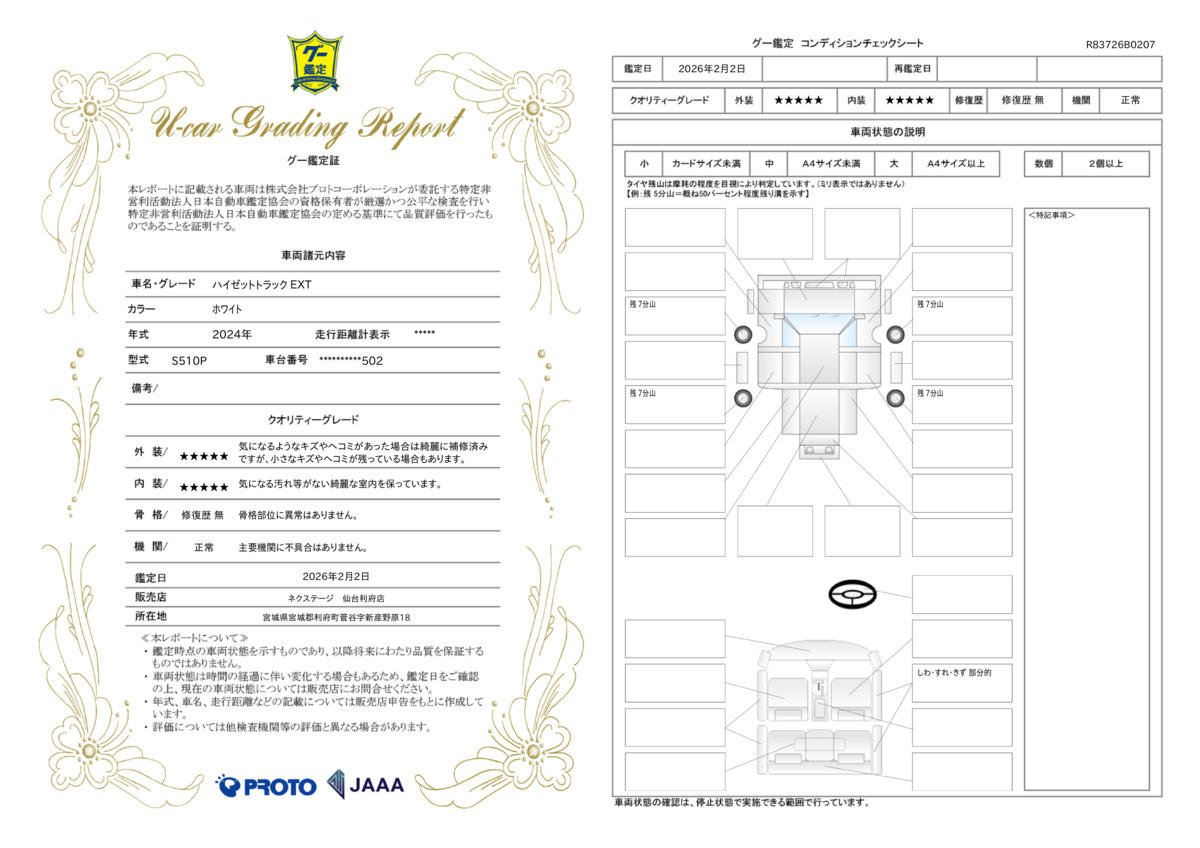 弊社では、全車『修復歴なし』のお車のみ取り扱っております。専任バイヤーによる厳選した仕入れの後、入庫後の車両チェックを行い、ネクステージが認定した高品質な中古車をご提供しております。 15