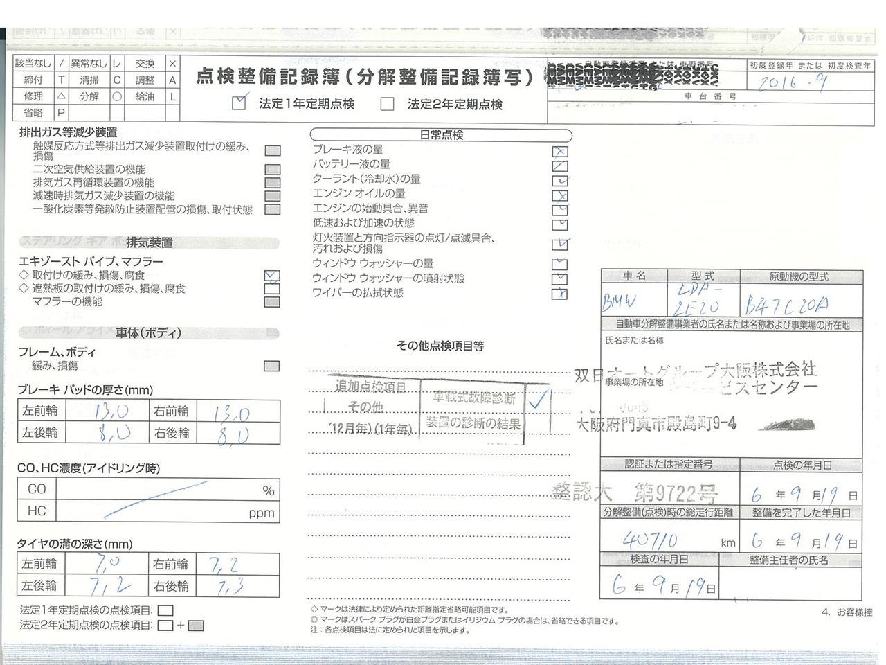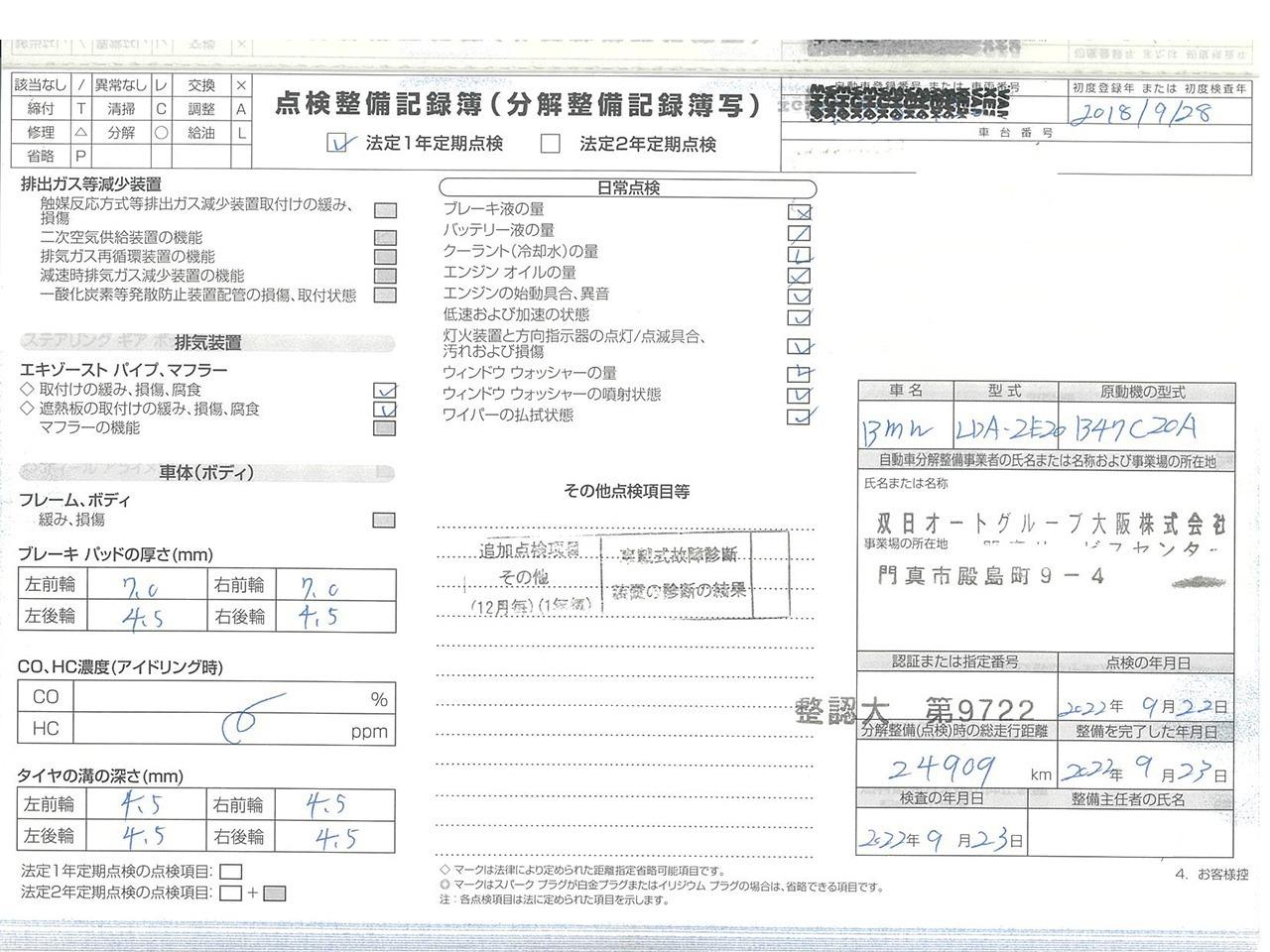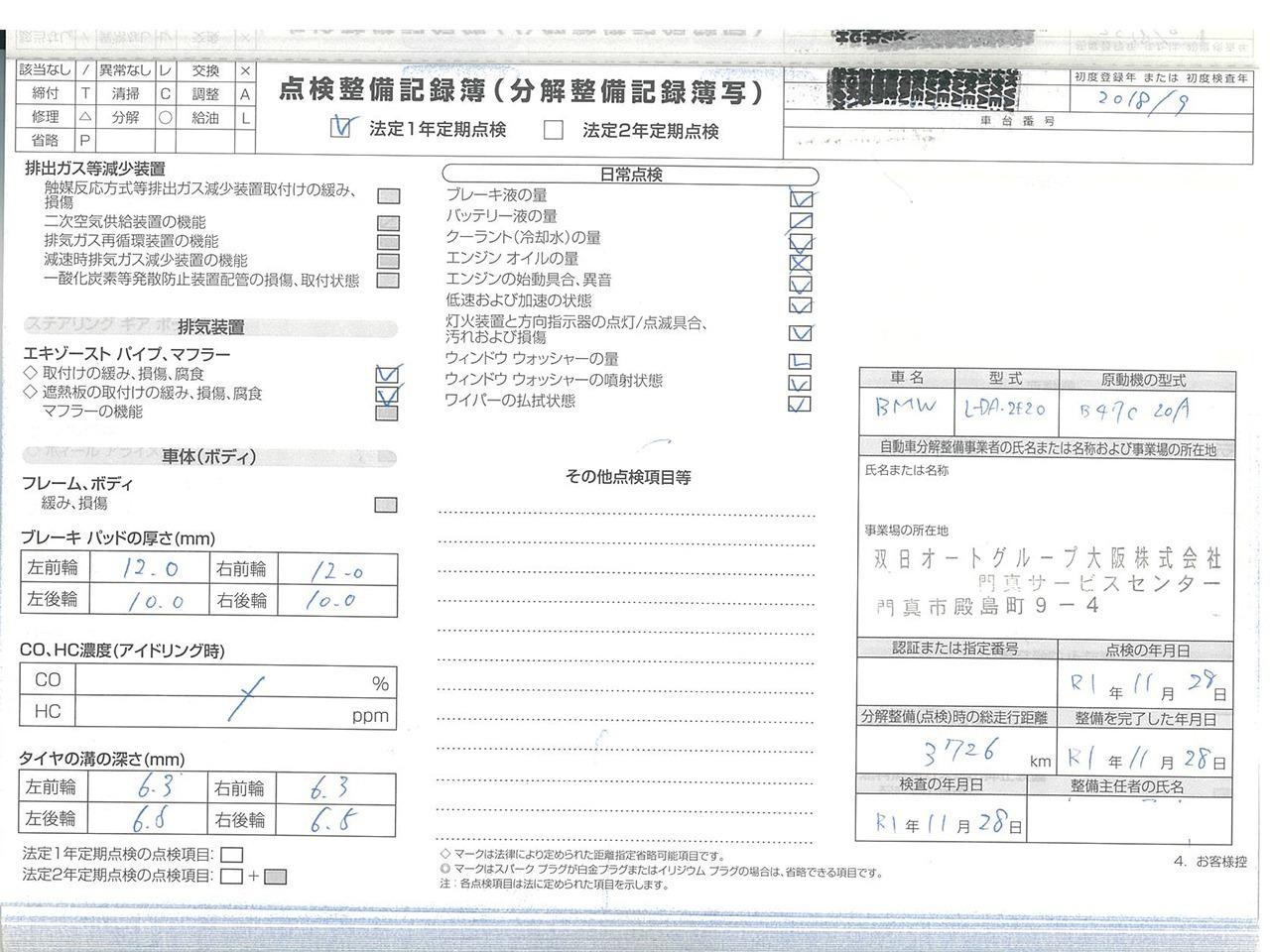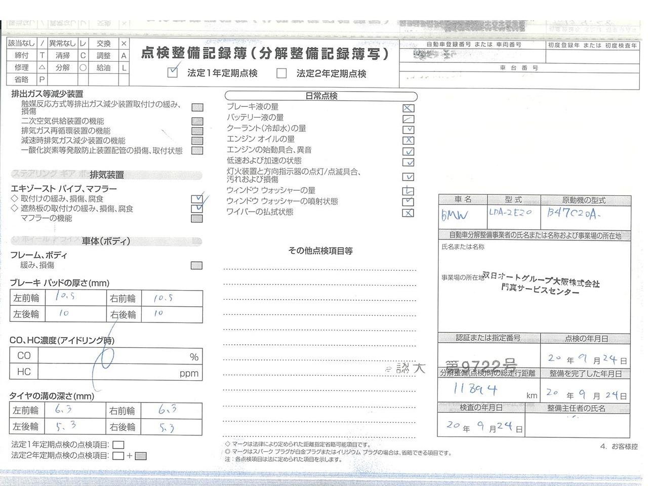 当社はBMWクオリティパートナー認定店です。ご納車前に認証工場にて点検致します。点検整備記録簿も発行致します。 |