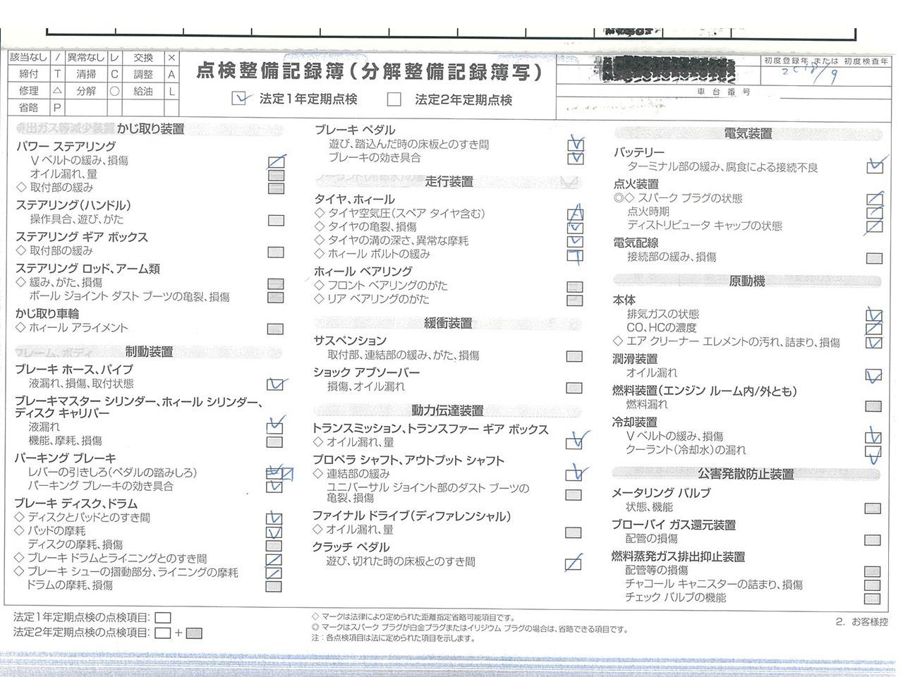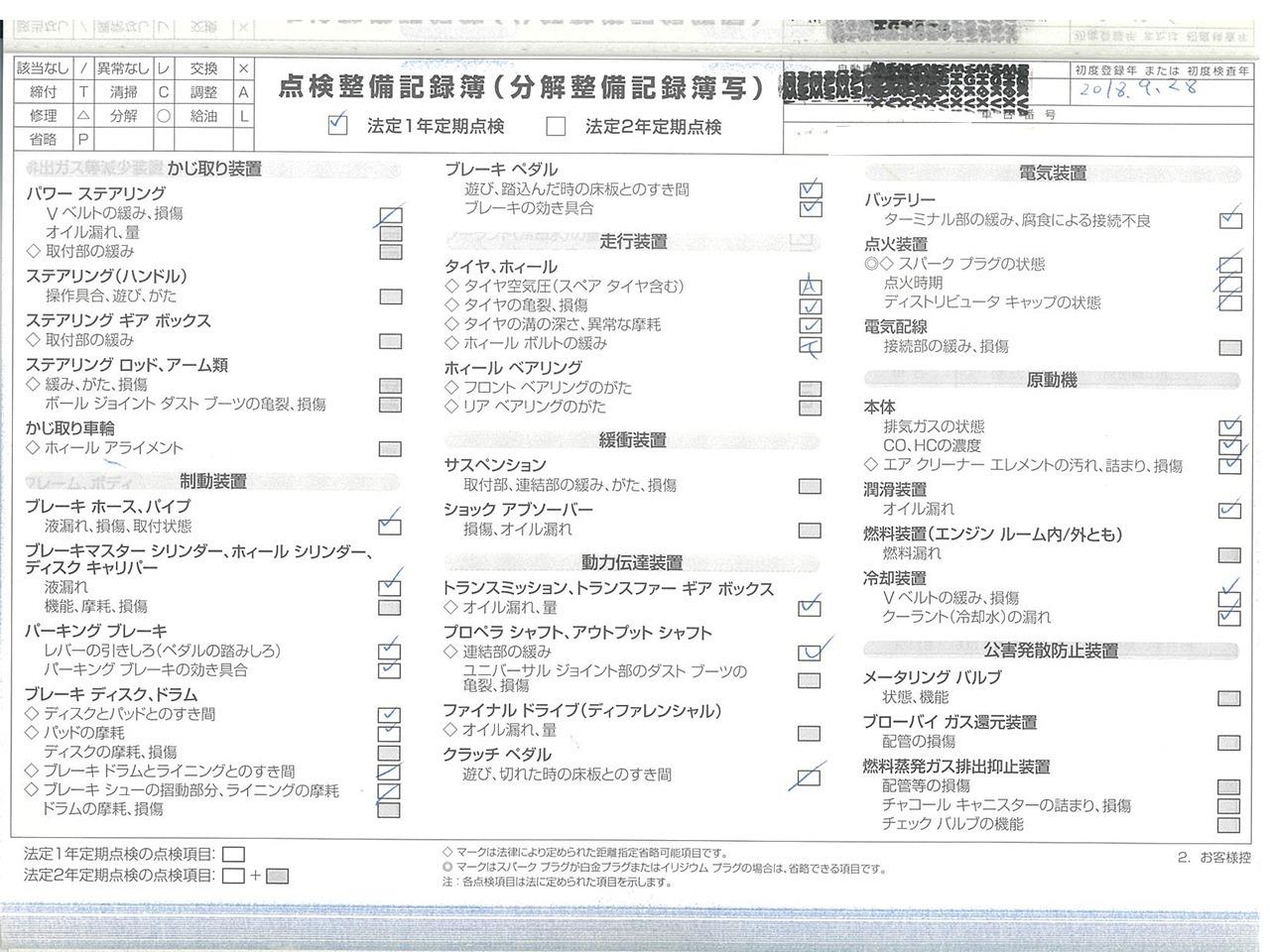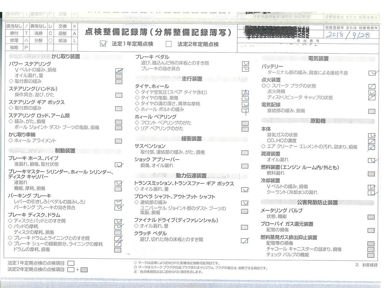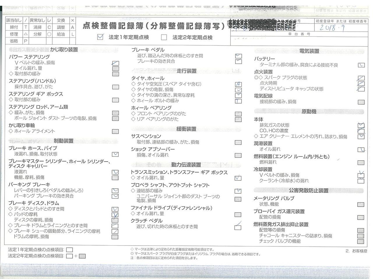 整備付 ご契約後からご納車までに認証工場にて法定点検を実施致します。点検費用は支払総額に含まれております。点検整備記録簿を発行致します。 |