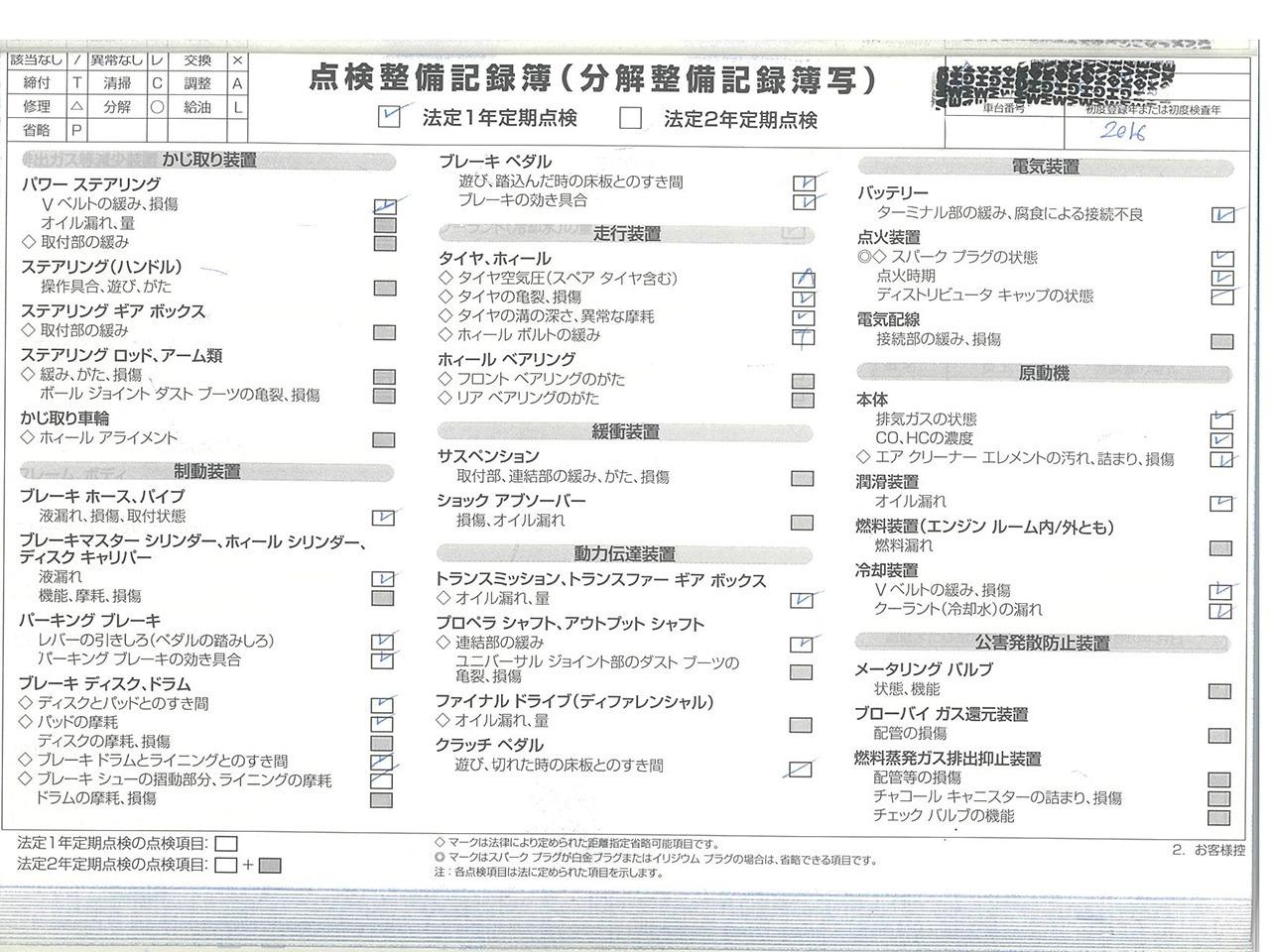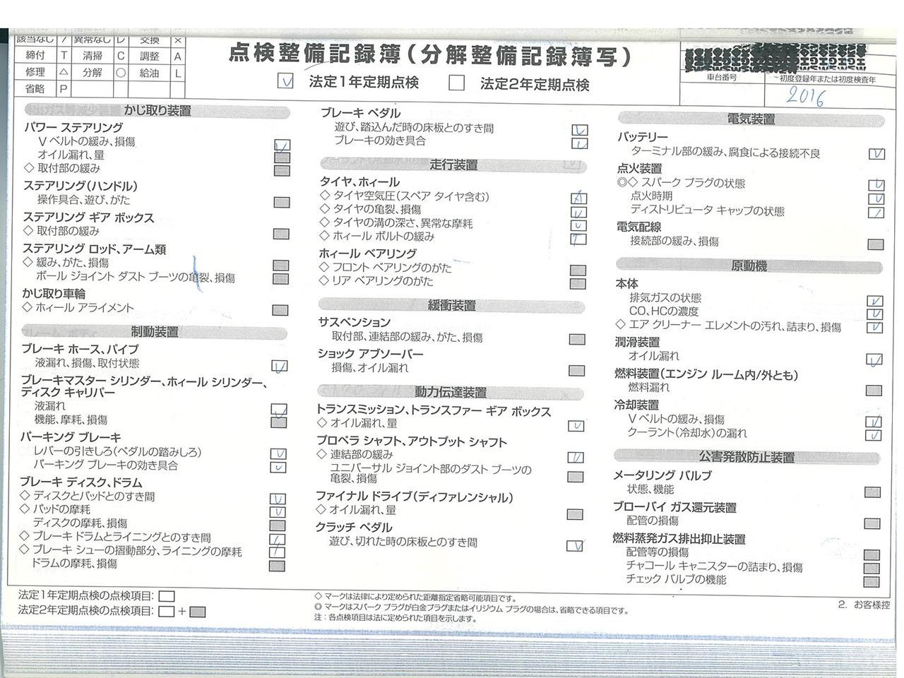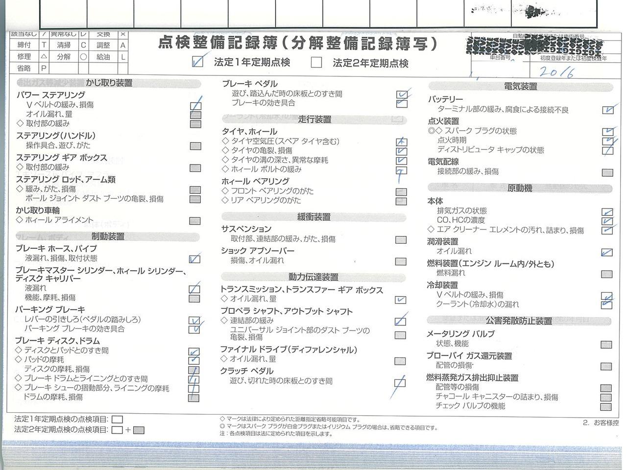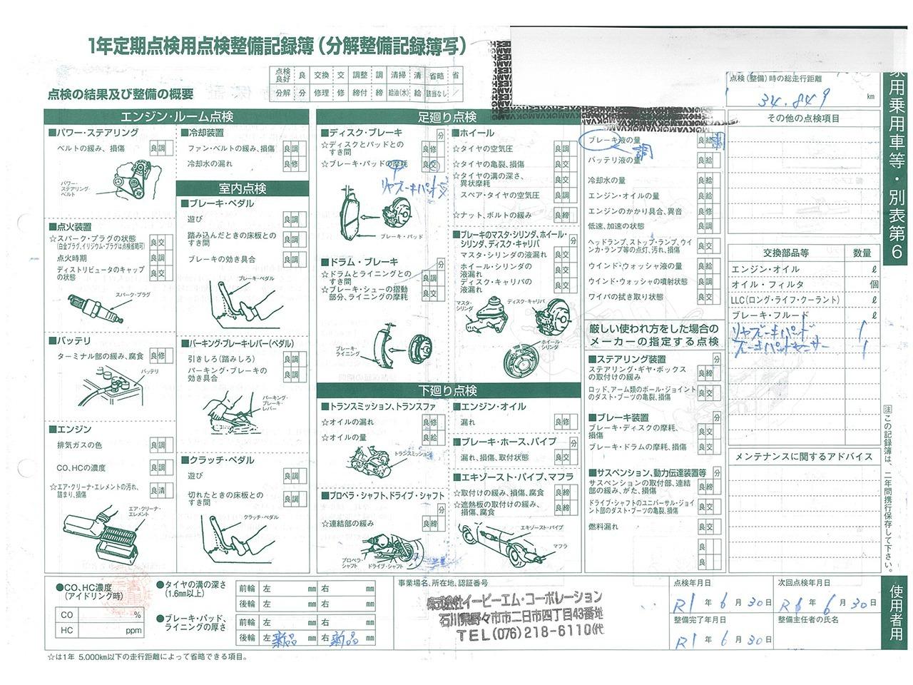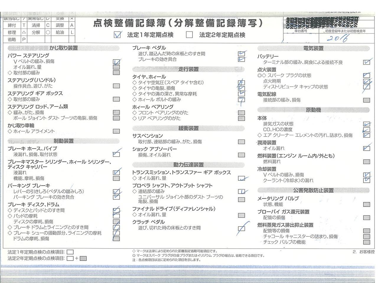 整備付 ご契約後からご納車までに認証工場にて法定点検を実施致します。点検費用は支払総額に含まれております。点検整備記録簿を発行致します。 |