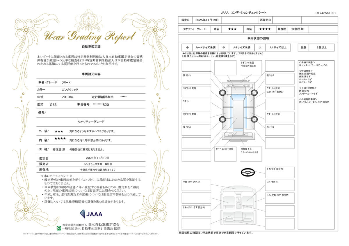 | 保証修理受付先 | 日本国内のHondaCars店、U−Select店であればどこでも修理対応が可能です。別途ホンダトータルケア(無料)にご登録頂ければ購入店舗までの無料ロードサービスもございます。 |
