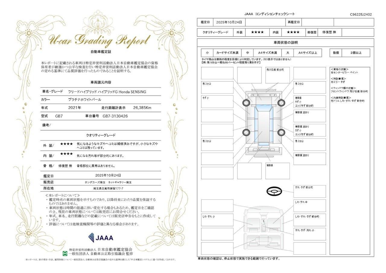 Honda認定中古車です。無料で走行距離無制限の保証が2年付きます。保証は全国のホンダ販売店をご利用いただけ、ハイブリッド機構の保証については初度登録から10年目まで付くので安心です