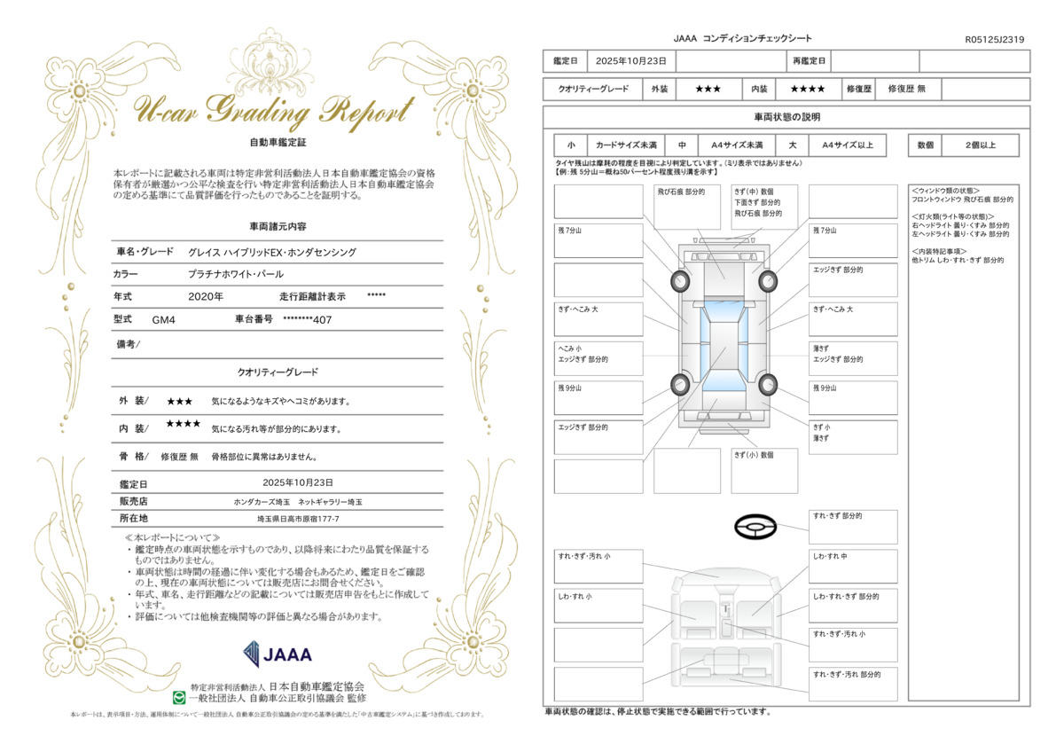 グレイス ハイブリッドEX ホンダセンシング 純正メモリーナビBluetoothドラレコETCRカメラワンオーナー フルセグTV 0561205A30251023W007 1
