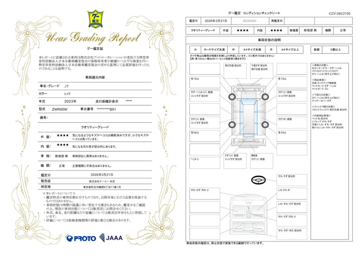 ケーユーでは修復歴の有無を全車に表示。公的機関「(財)日本自動車査定協会」の基準を採用。日本オートオークション協議会「走行距離管理システム」で距離に不正が無いかもチェック済みです。 15