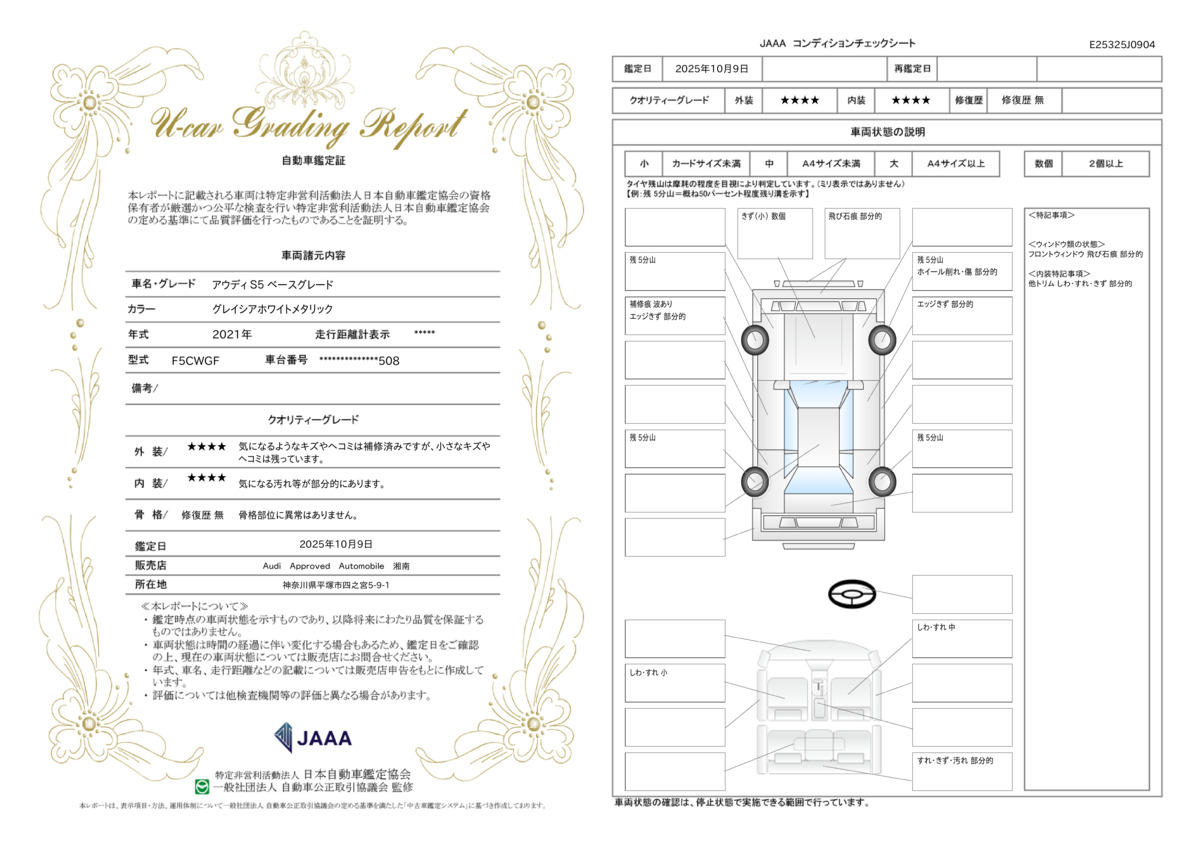 [保証付]:12ヶ月・走行無制限 Audi認定中古車は、保証期間によって3つのグレードを設定しています。充実の保証制度により安心してAudiライフをお楽しみいただけます。 |