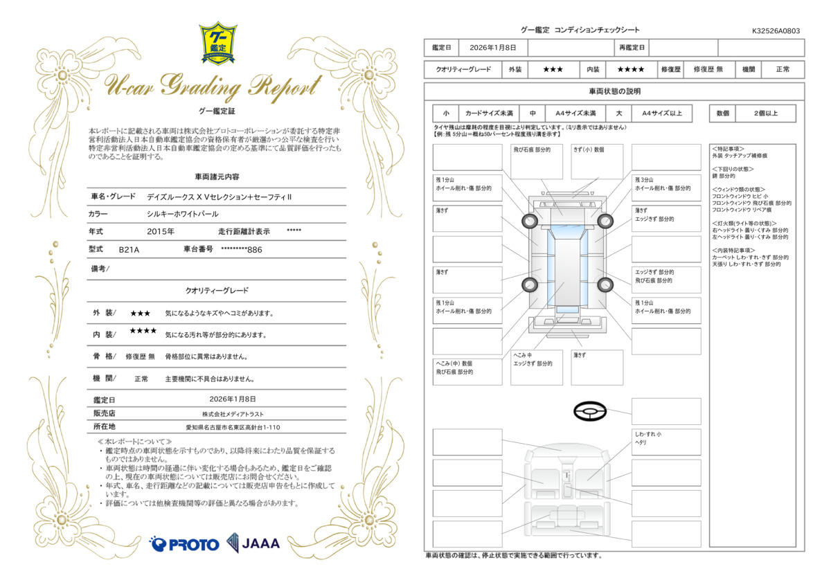 | 保証修理受付先 | 故障の際はクルオク名古屋インター店の営業スタッフまでご連絡下さい。 |
