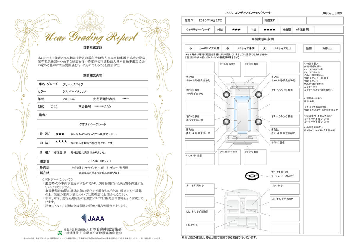 ホンダ フリードスパイク Gジャストセレクション 1年保証 ワンオ−ナ− ナビVXM−118VS TV DVD ETC HID キーレスキー 盗難防止装置 整備記録簿 ドアバイザ− AAC セキュリティー ナビ・テレビ AUTOエアコン ワンセグ