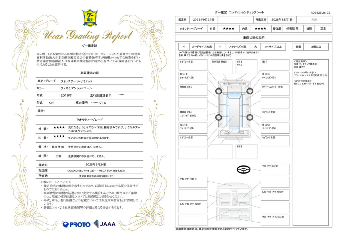 [保証付]:1ヶ月・1000km ※いずれか早い時期が保証適用の条件となります。 業界高水準、最長保証期間はなんと15年。保証項目406部位。任意による1年毎の更新が可能な新しいアフターサービス「GOOD SPEEDオリジナル プレミアムワランティー」をご用意させて頂いております。 |