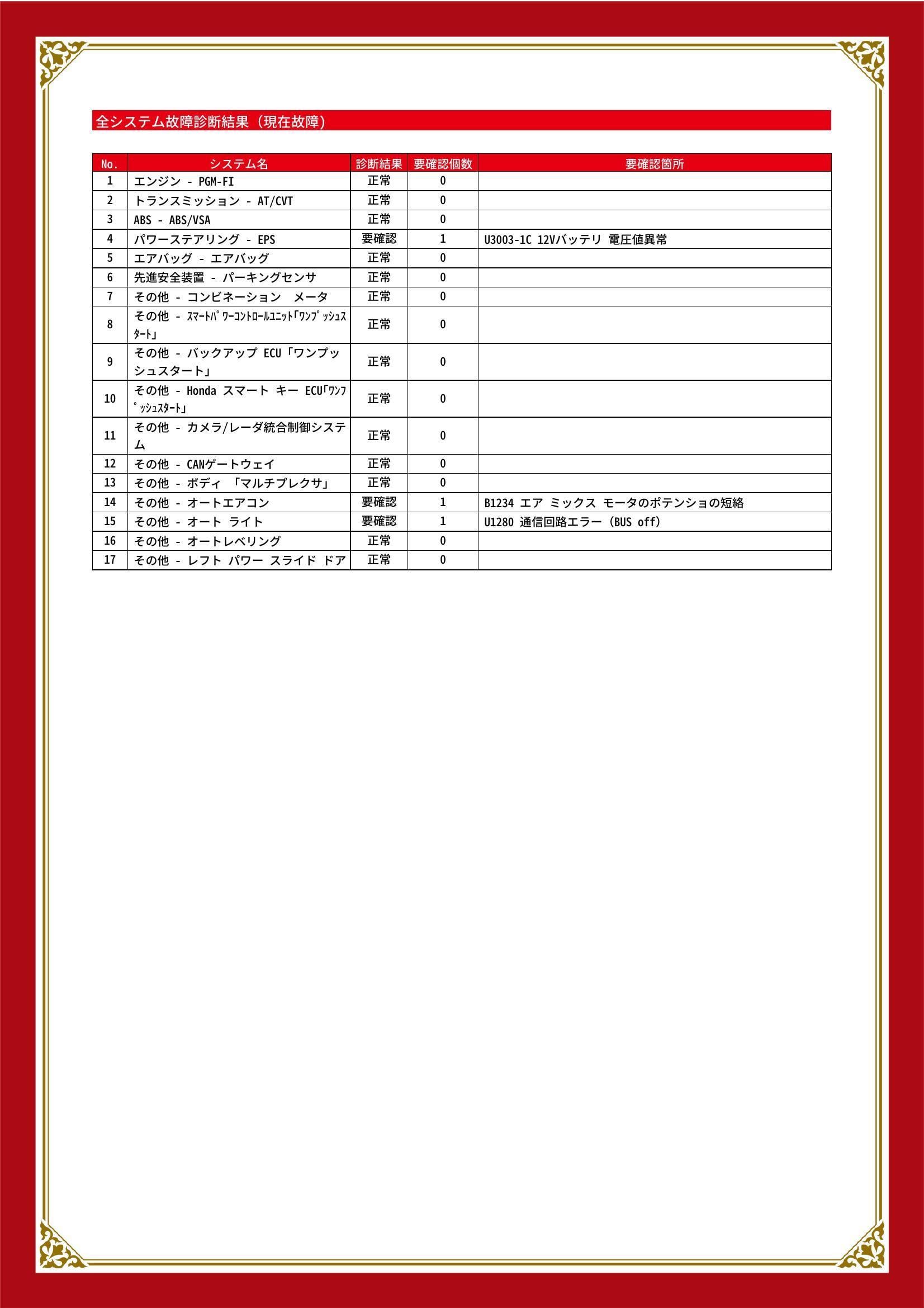 | 保証項目 | その他、スタンダード・プラチナ保証をご用意。【スタンダード・プラチナ保証】では対象項目が業界最高水準の400部位以上!消耗品以外は保証にてご対応出来ます。詳細は店舗へお問い合わせください! |