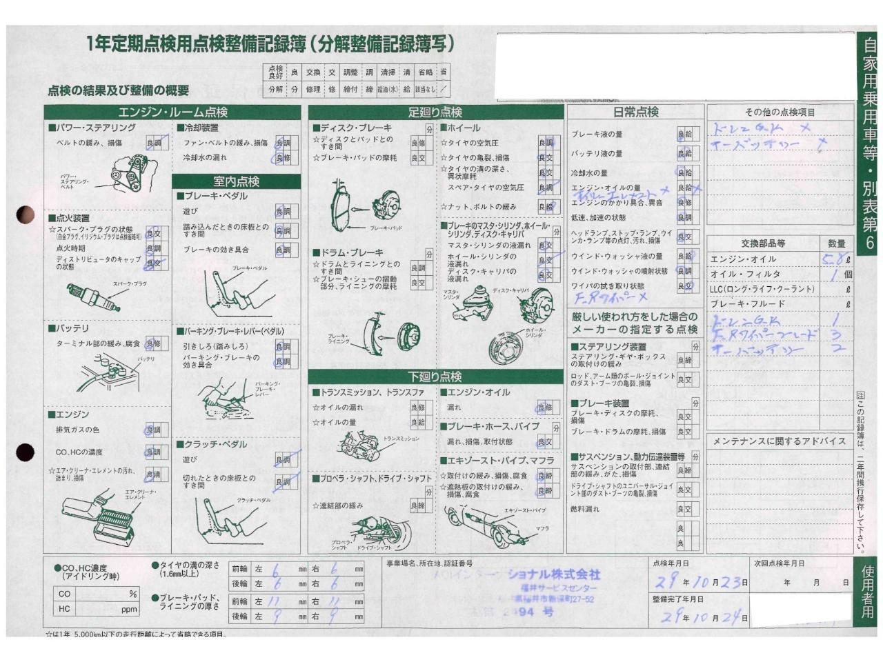 エンジンオイル・エンジンオイルフィルター・バッテリー・ブレーキフルード・エアコンフィルター・フロントワイパーゴム・クーラントブースター・エアフィルター・エンジンインジェクタークリーナーを新品交換!!! |