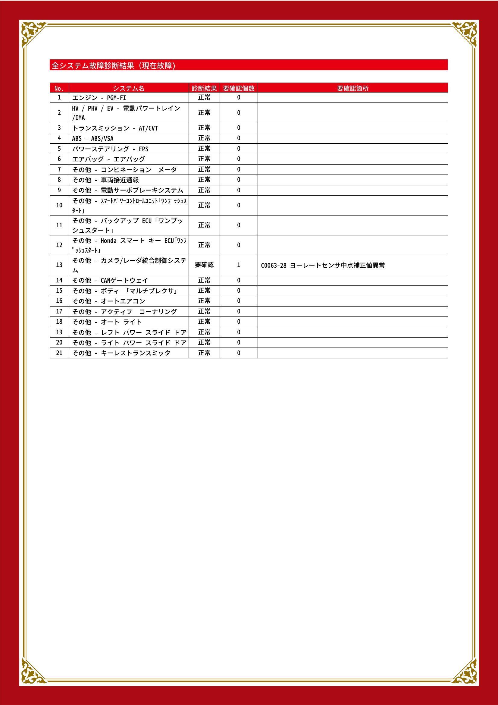 | 保証項目 | |