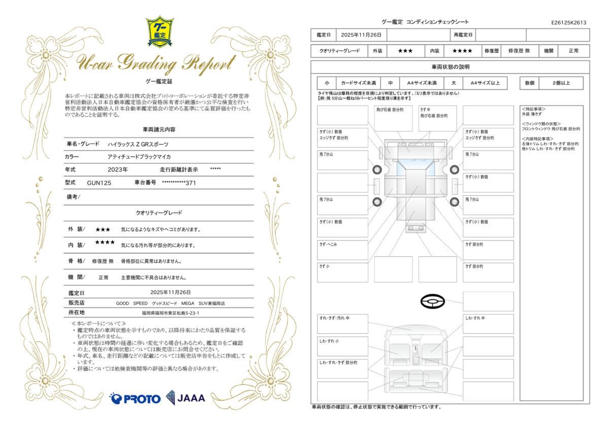 [保証付]:1ヶ月・1000km ※いずれか早い時期が保証適用の条件となります。 業界高水準、最長保証期間はなんと15年。保証項目406部位。任意による1年毎の更新が可能な新しいアフターサービス「GOOD SPEEDオリジナル プレミアムワランティー」をご用意させて頂いております。 |