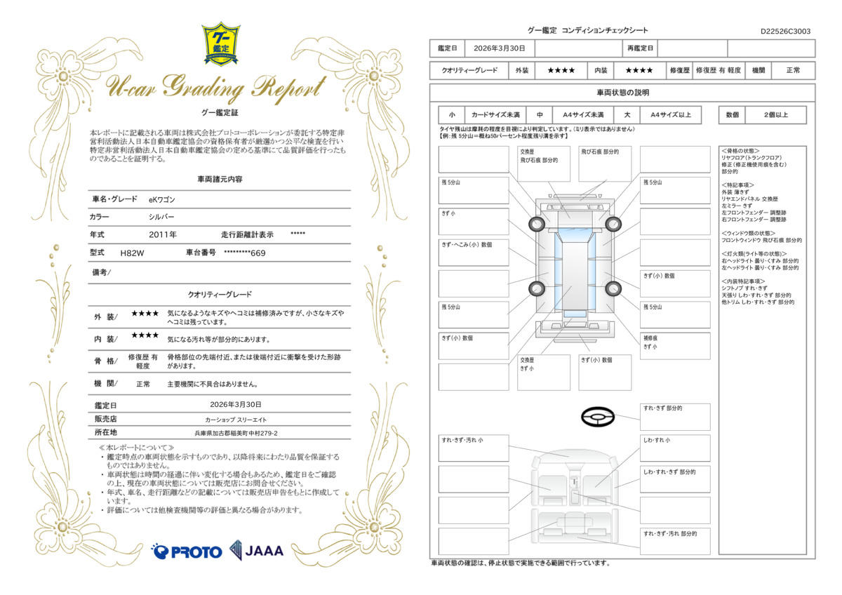 | 車両状態評価書 | ○ | ||