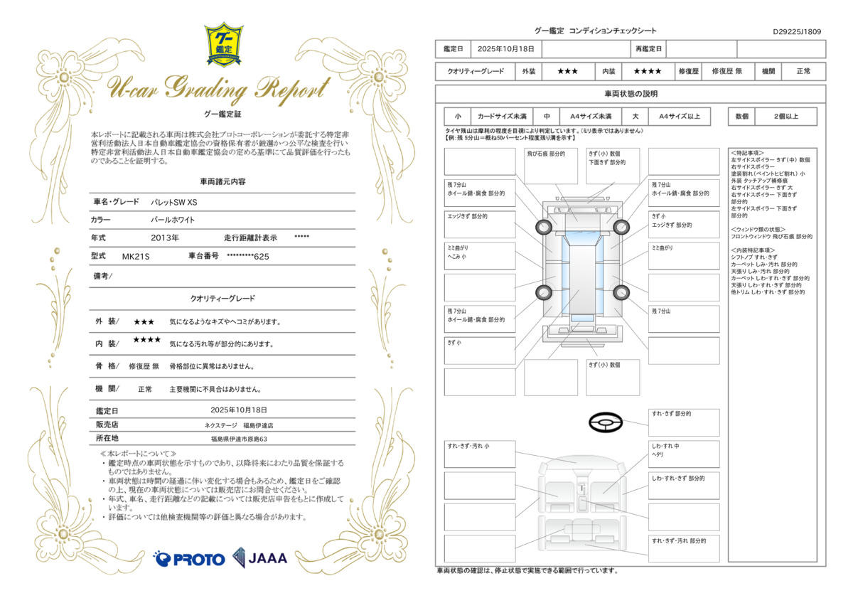 弊社では、全車『修復歴なし』のお車のみ取り扱っております。専任バイヤーによる厳選した仕入れの後、入庫後の車両チェックを行い、ネクステージが認定した高品質な中古車をご提供しております。 15
