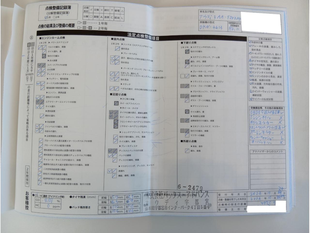 ご登録から1年間、走行距離無制限でエンジンやトランスミッション、ブレーキ等の主要部品を含むほぼ全部品を無償にて保証致します。有償にてさらに保証延長(2年or1年)も加入可能です。