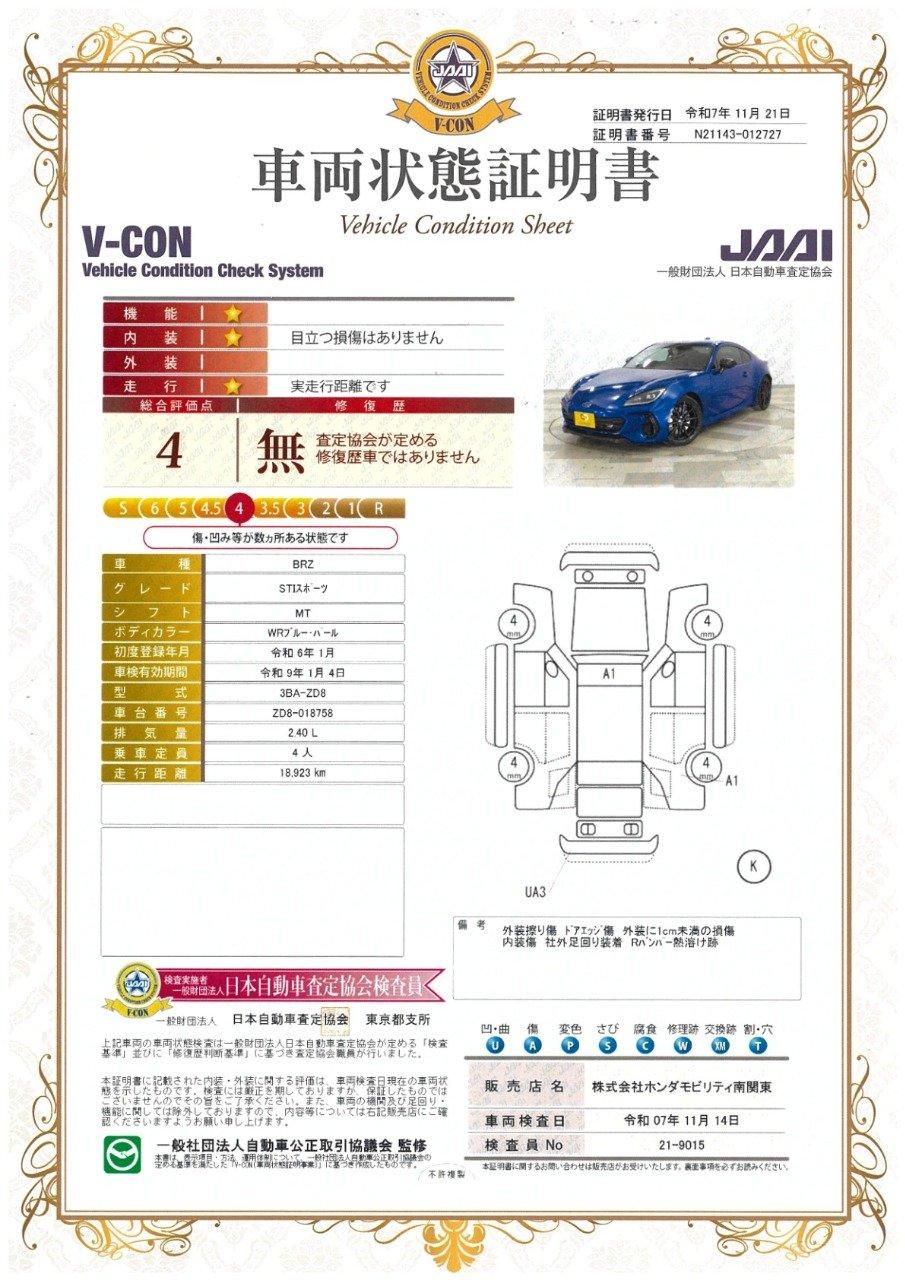 BRZ STIスポーツ 禁煙車 アルパインナビ サイド 0550538A30251211W002 1