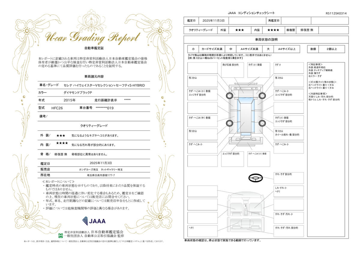 修復歴 なし 車体色 ダイヤモンドブラックP