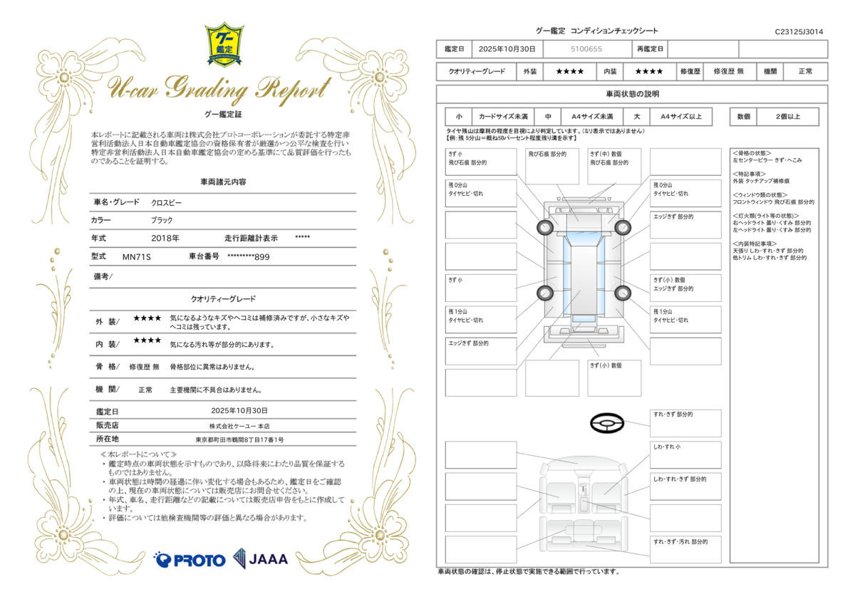 ケーユーでは修復歴の有無を全車に表示。公的機関「(財)日本自動車査定協会」の基準を採用。日本オートオークション協議会「走行距離管理システム」で距離に不正が無いかもチェック済みです。 15