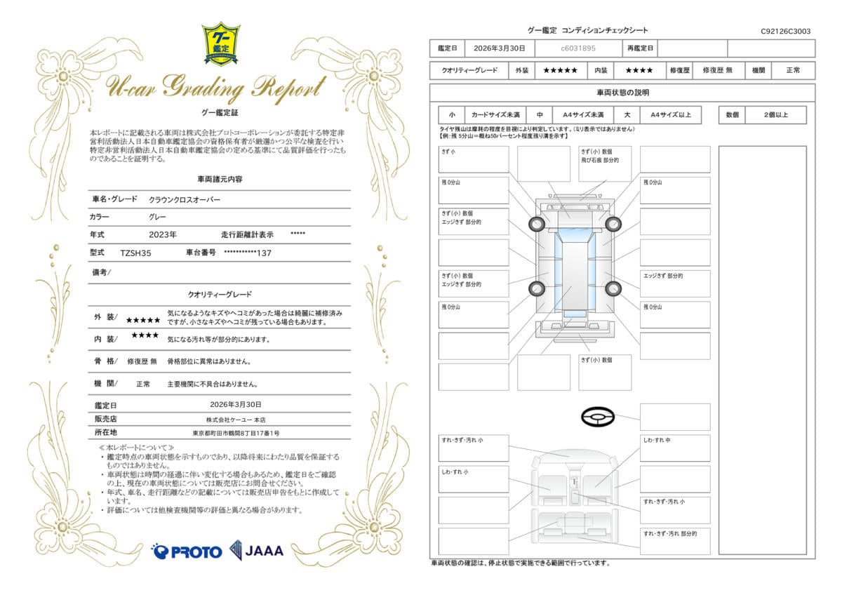 ¤³¤Î¤ª¼Ö¤ÏÂè»°¼Ôµ¡´Ø(JAAA)¤¬´ÕÄê¤ò¹Ô¤¤¡¢¤½¤Î·ë²Ì¤ò´ÕÄê¾Ú¤È¤·¤ÆÈ¯¹Ô¤·¤Æ¤ª¤ê¤Þ¤¹¡£
