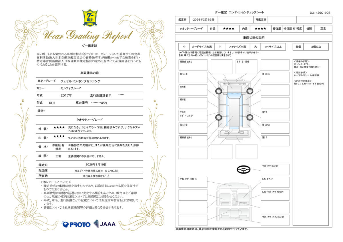 [保証付]:12ヶ月・走行無制限 有償延長保証:対象 |